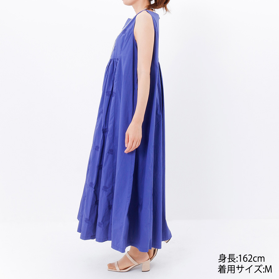 花刺繍ノースリーブワンピース(Mサイズ / ブルー / Pont de Chalons(ポンデシャロン))