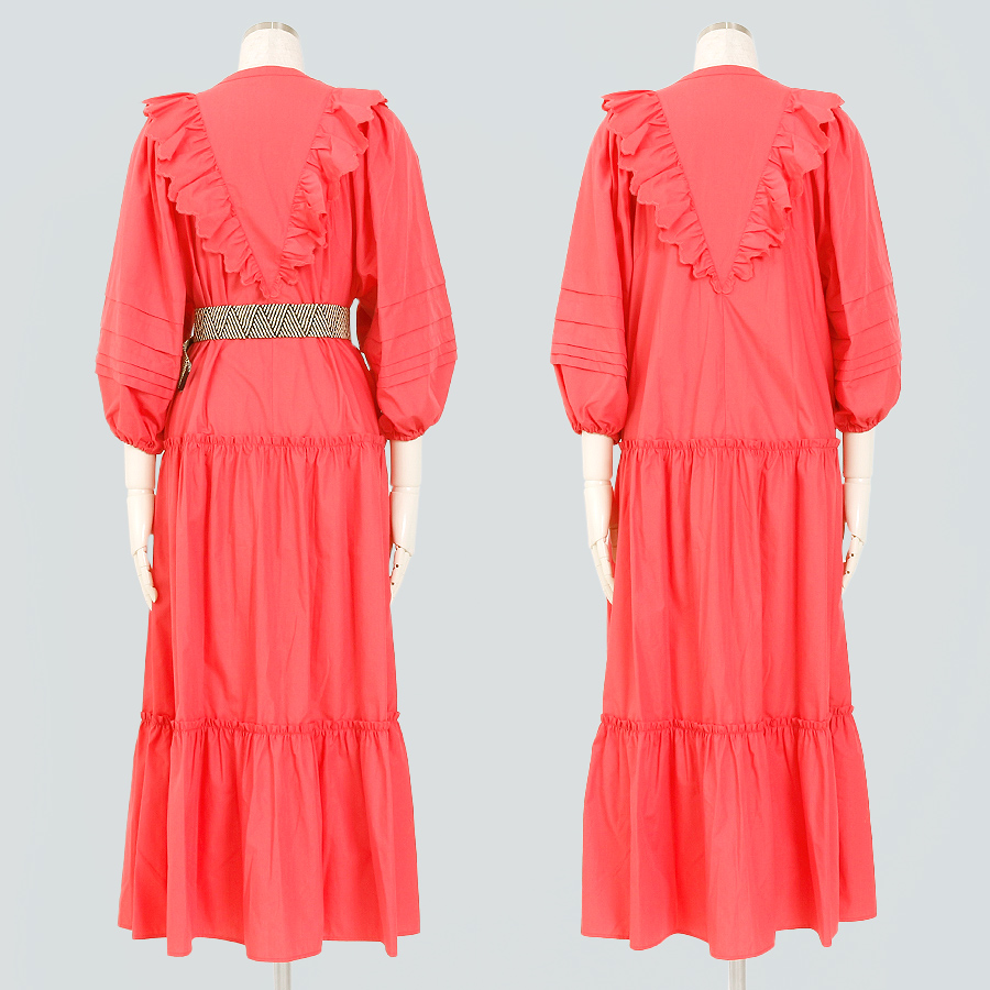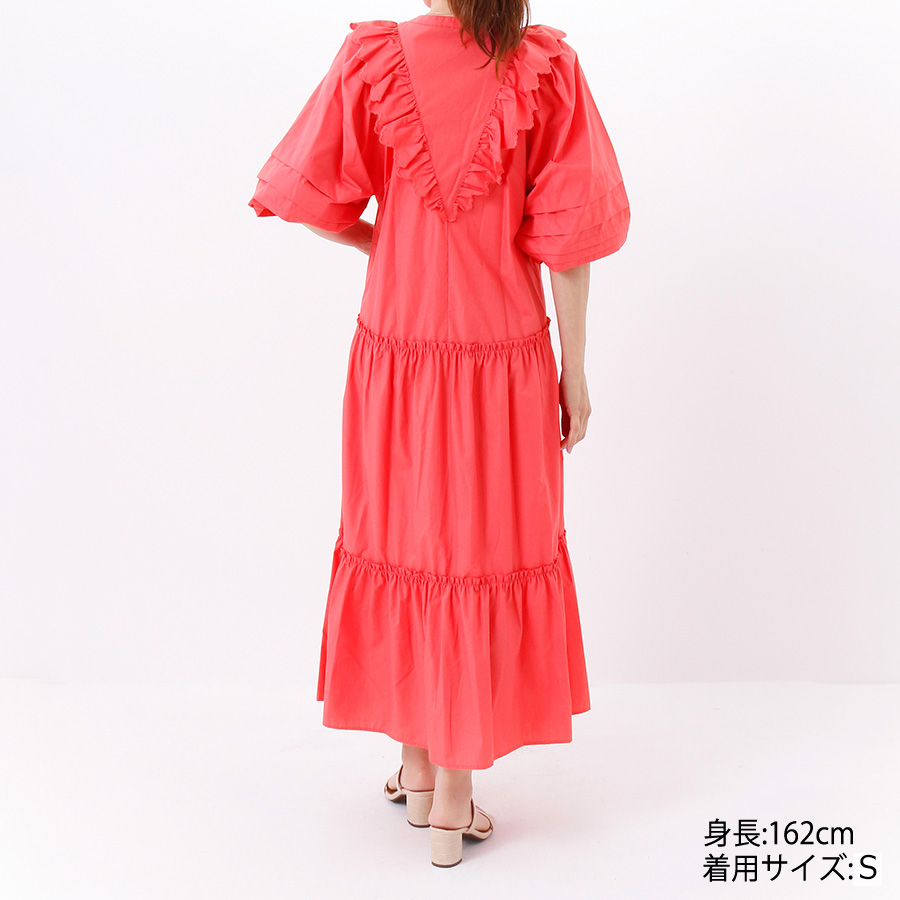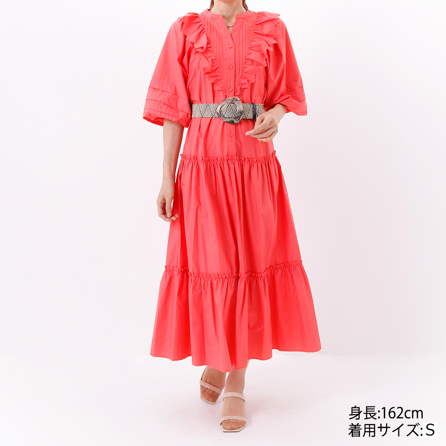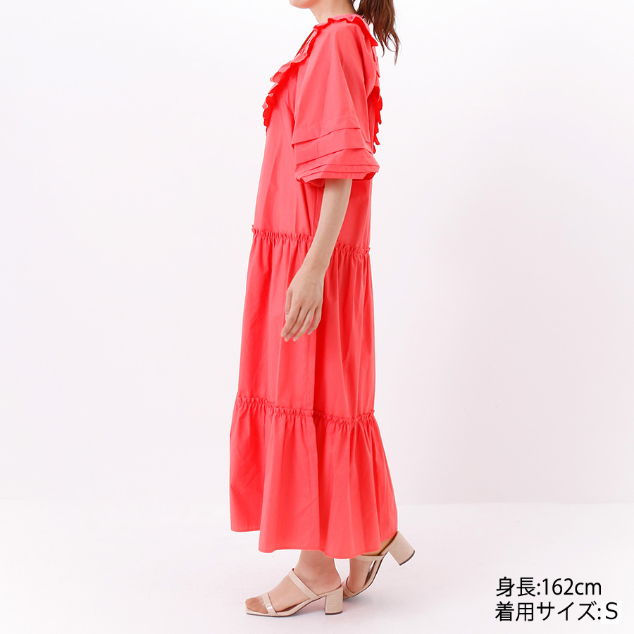 華やかなフリルとギャザーが目を引くフェミニンなワンピース。