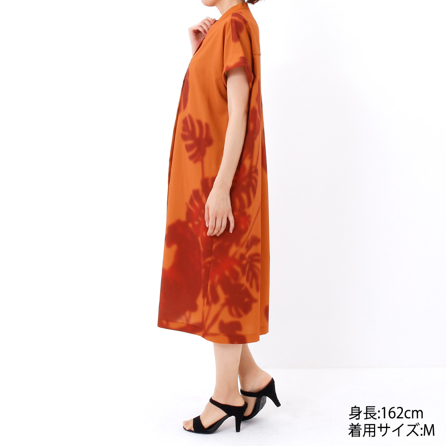 【初回レンタル】リーフシャドープリントワンピース(Mサイズ / オレンジ / EVEX by KRIZIA(エヴェックス バイ クリツィア))