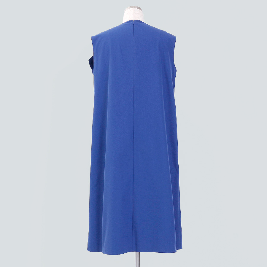 鮮やかな色が印象的なノースリーブワンピース。