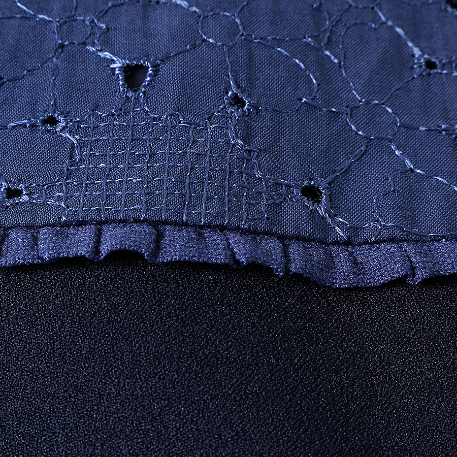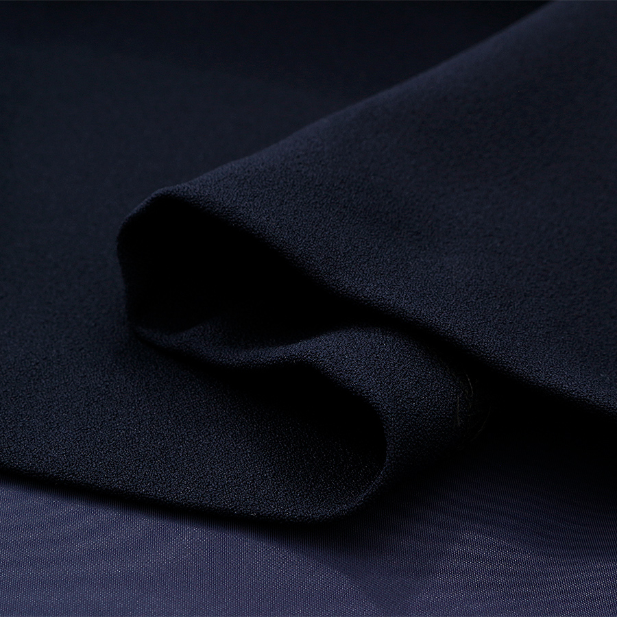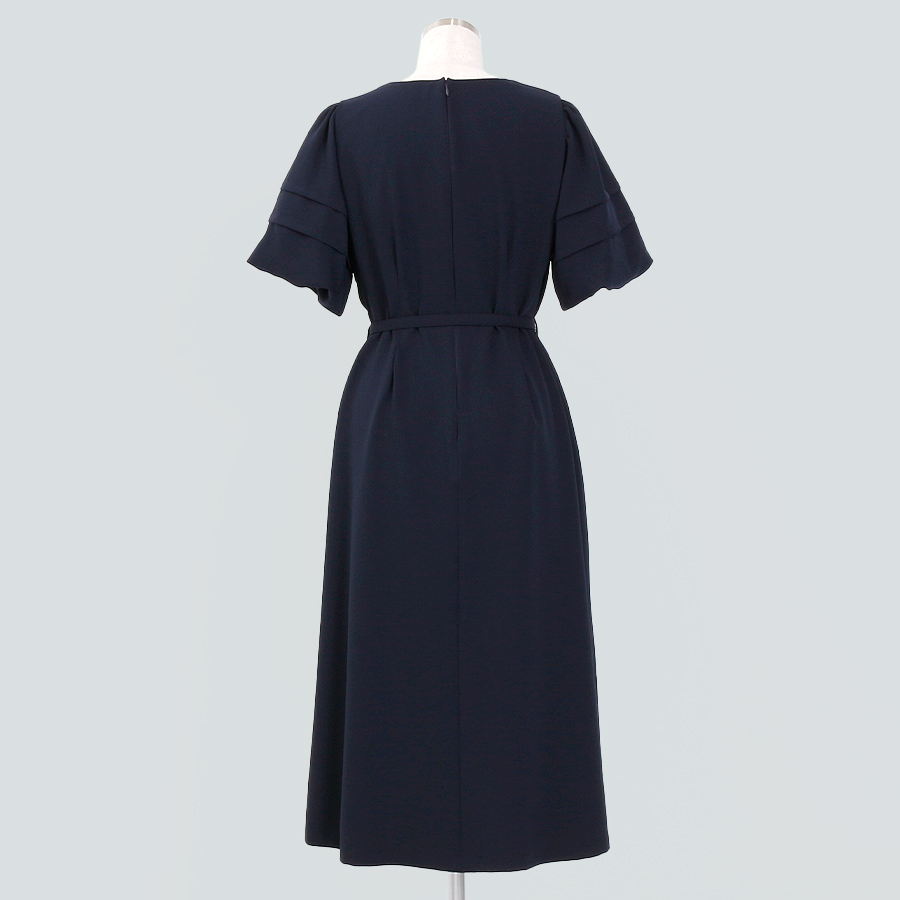 上品なネイビーは、セレモニーや女子会、オフィスシーンにもぴったりの一枚です。