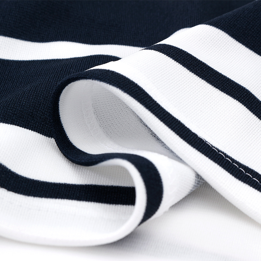 布帛の様なコンパクトな目面と透けずらいジャージ素材。微光沢で適度にハリ感と伸縮性があり、ストレスフリーな着心地です。