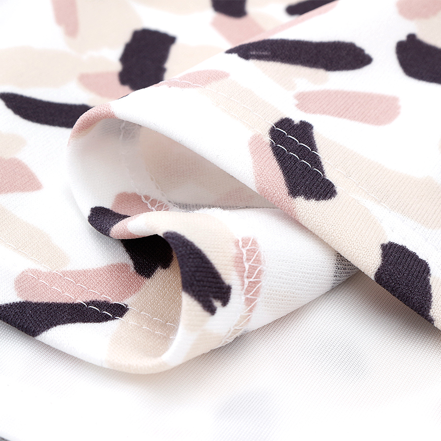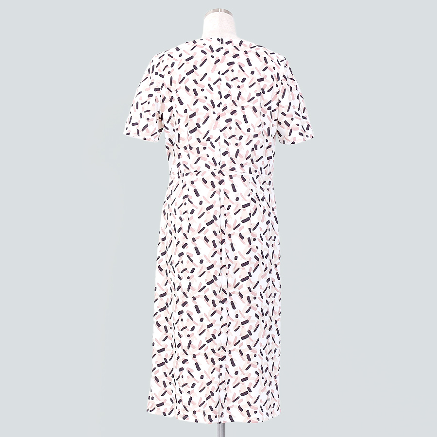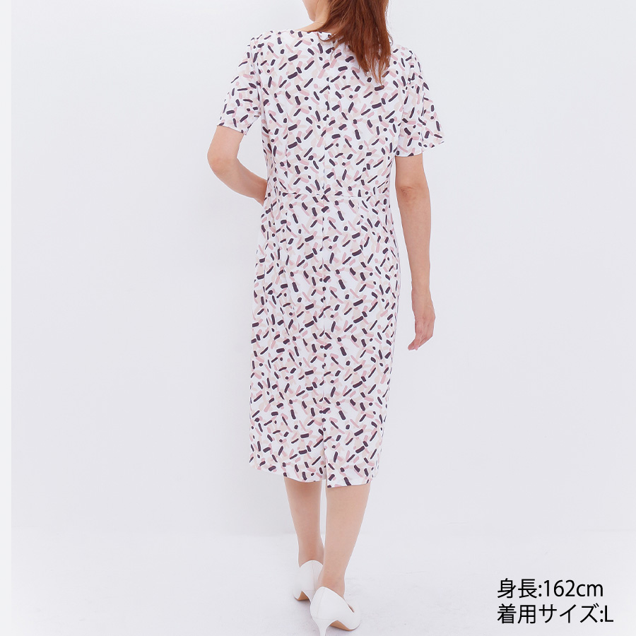 変形幾何柄のタイトシルエットワンピース。
