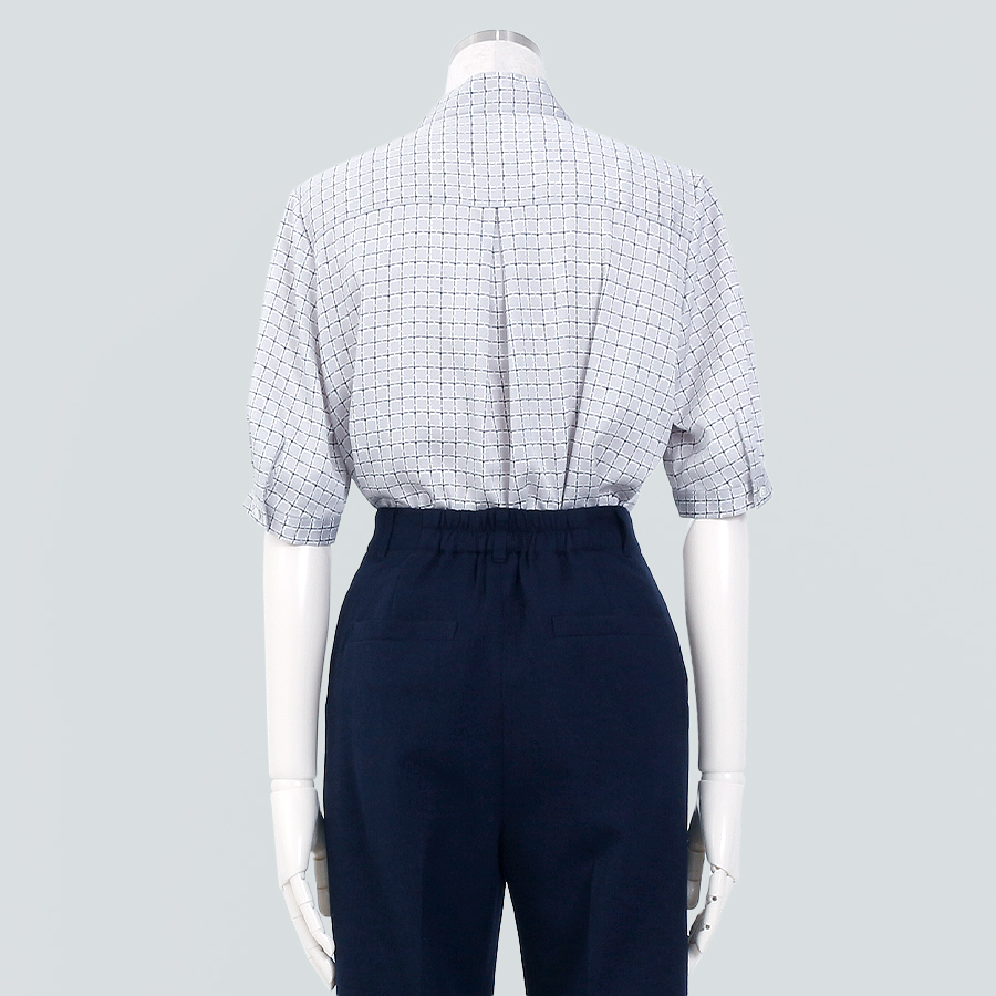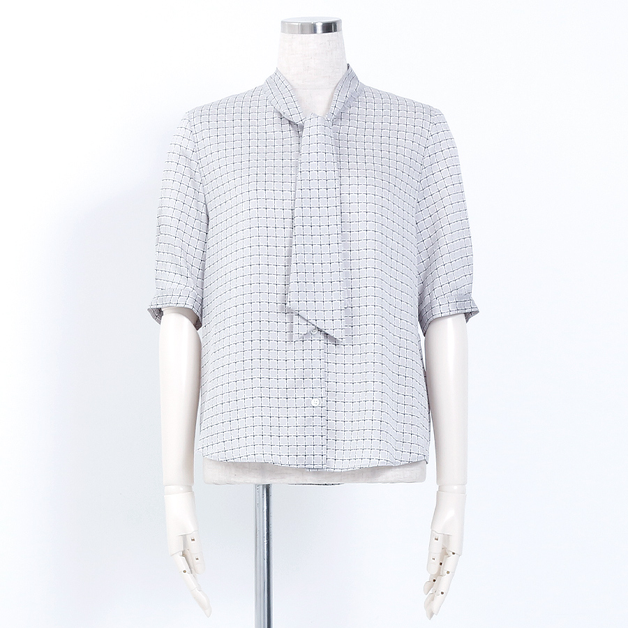 ジオメチェックボウタイブラウス(Mサイズ / グレー / UNTITLED(アンタイトル))