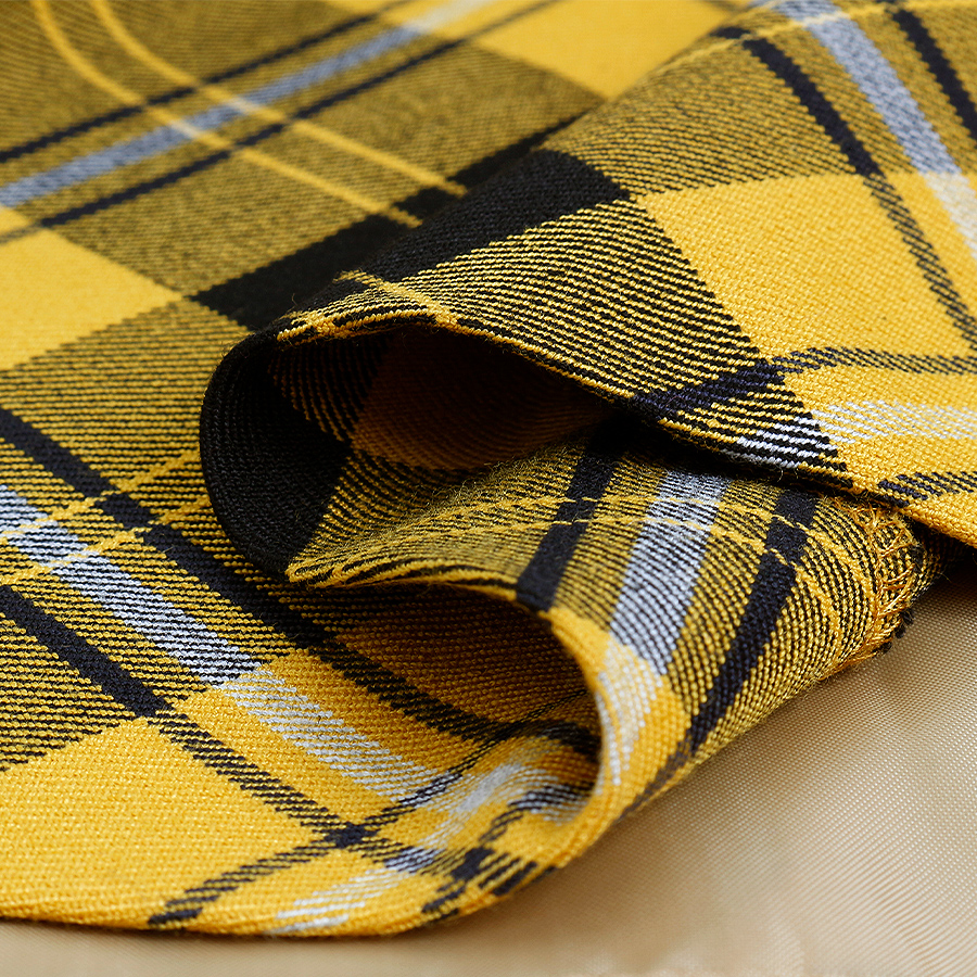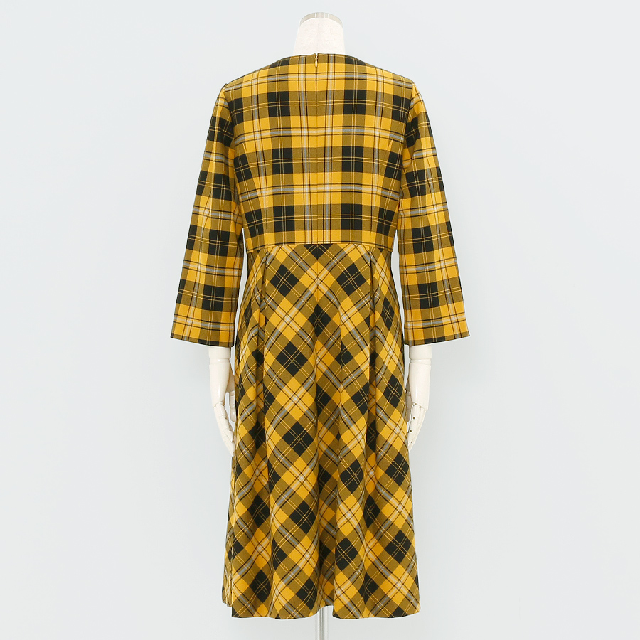 華やかなイエローチェックが目を引くワンピース。