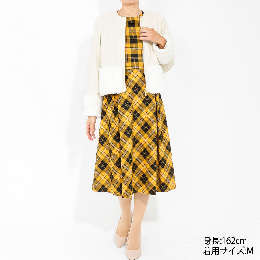 タータンチェックワンピース(Lサイズ / イエロー / jour merveille(ジュール メルベイユ))
