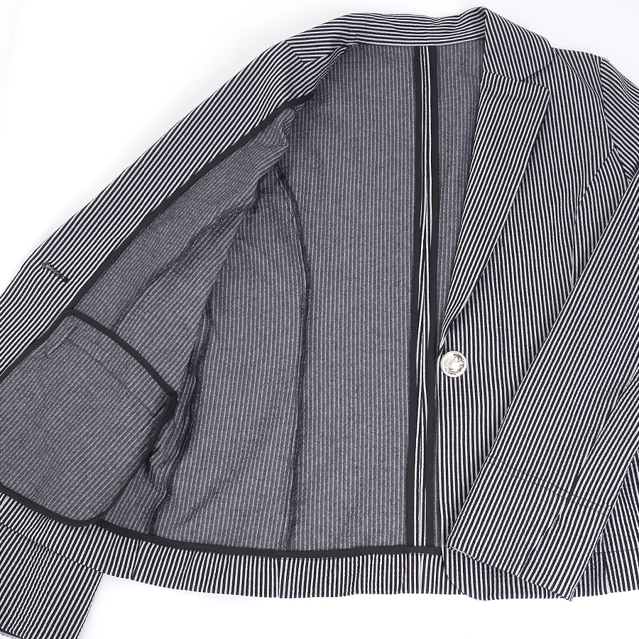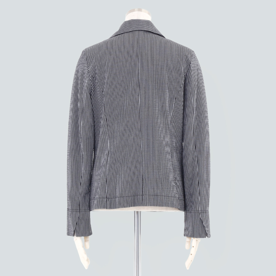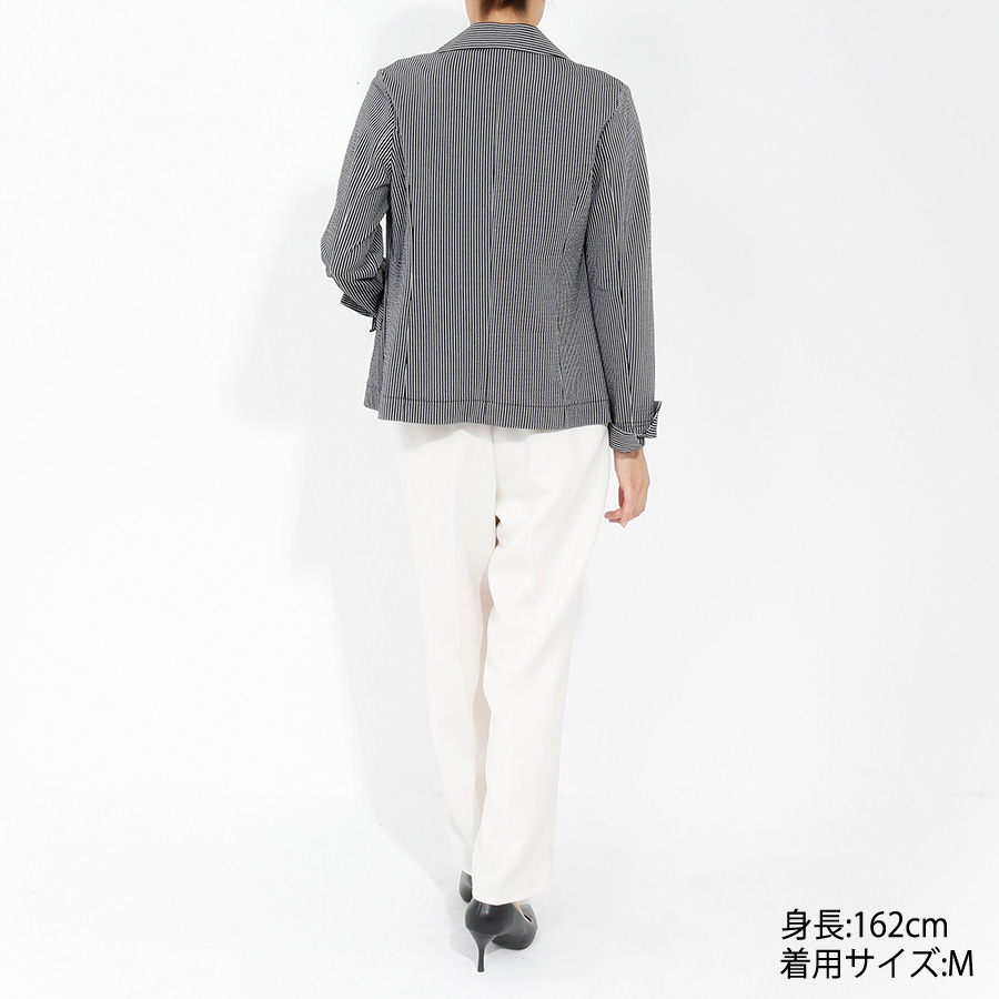 細かなストライプ柄が洗練された印象を与えるテーラードジャケット。