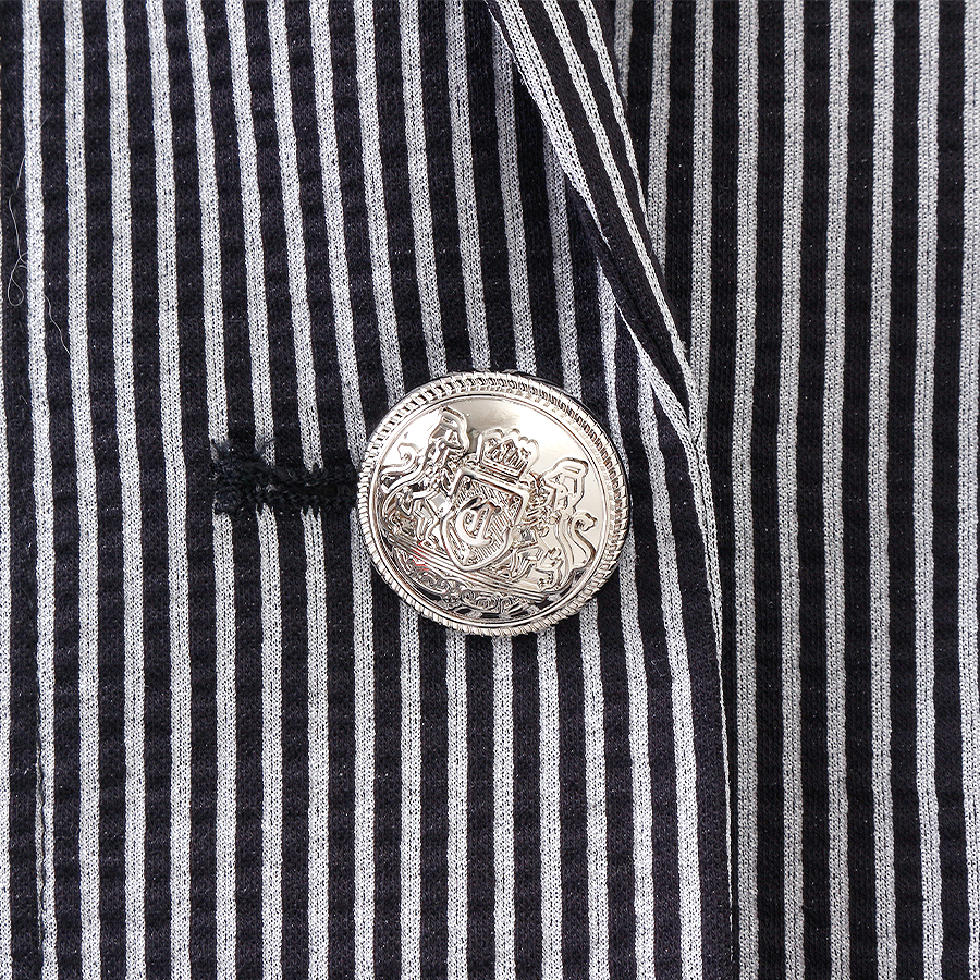 釦はエンブレムがデザインされたメタル釦で重厚感と高級感を醸し出しています。