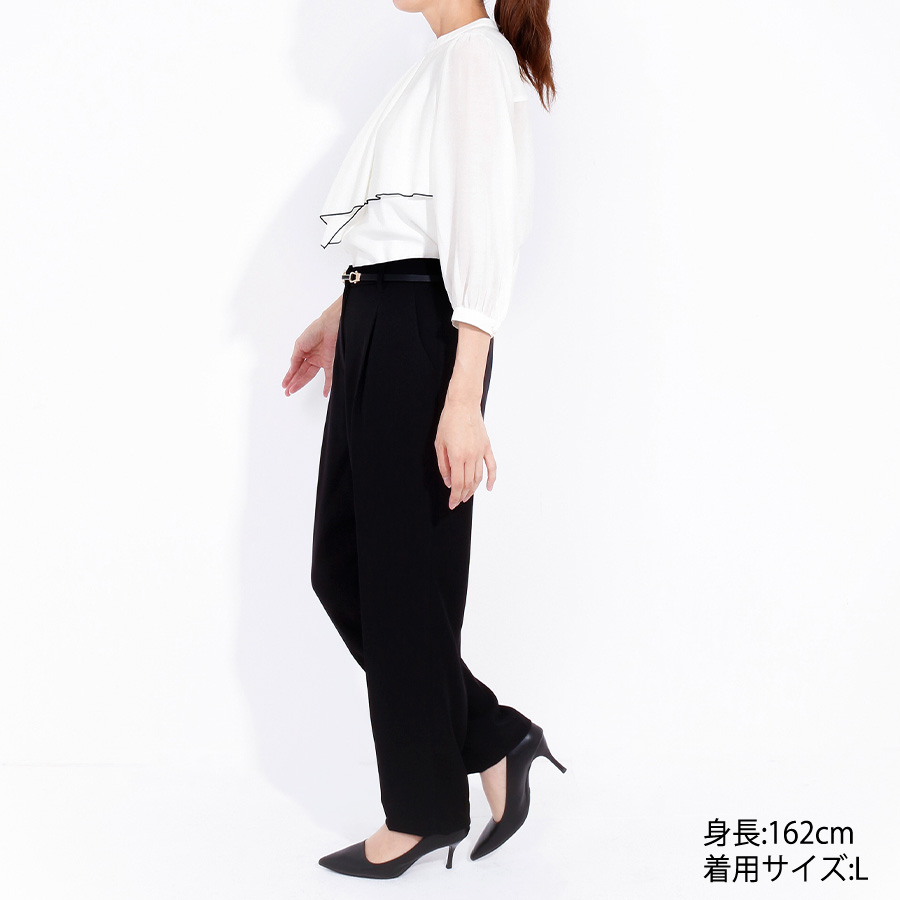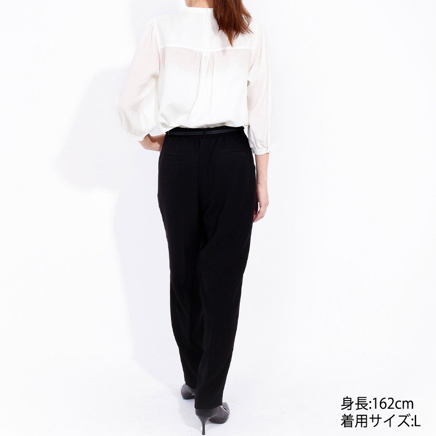 【パンツ】女性らしい美脚ライン演出するテーパードパンツ。