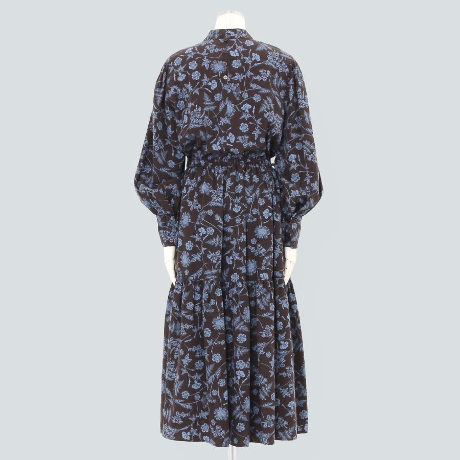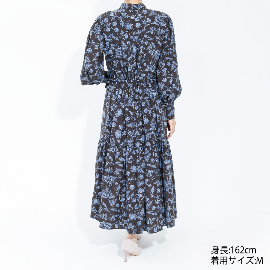 華やかさと上品さを兼ね備えたバンドカラーティアードギャザーワンピース。