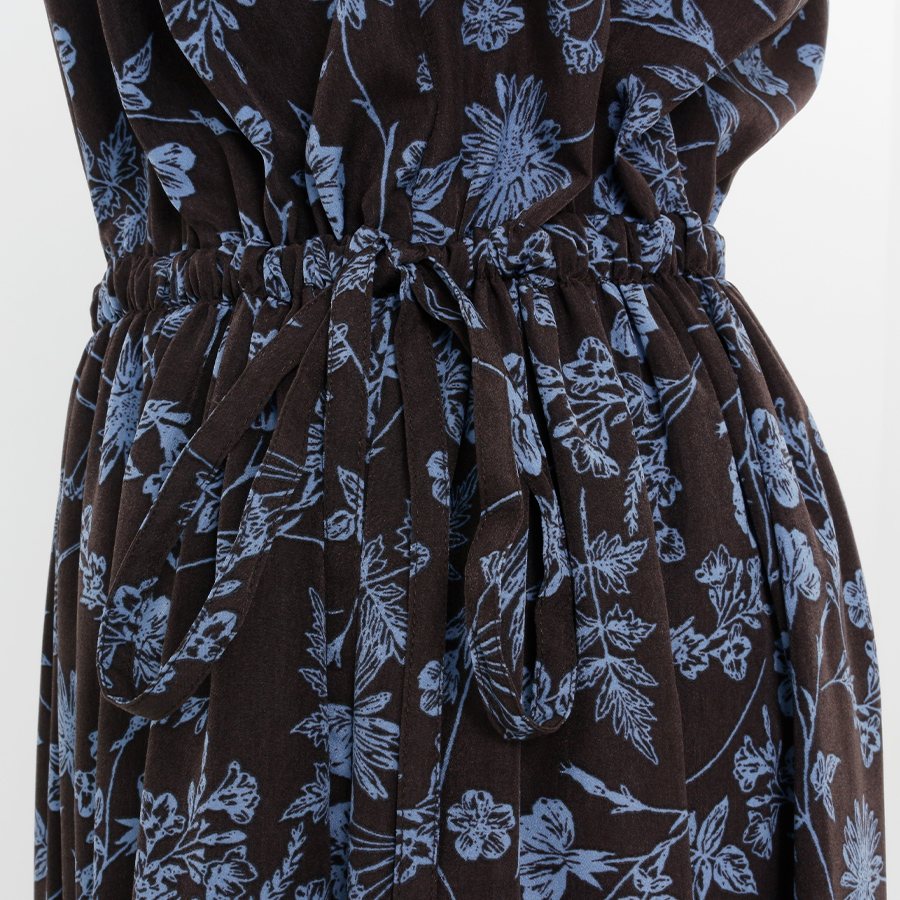 ティアードシルエットが縦ラインを強調し、ウエスト両脇部分の紐リボンでウエストマークができ、スタイルアップ効果も期待できる美しいシルエット。