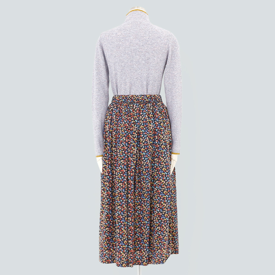 リブニット&ギャザースカート(Mサイズ / グレー×マルチ )