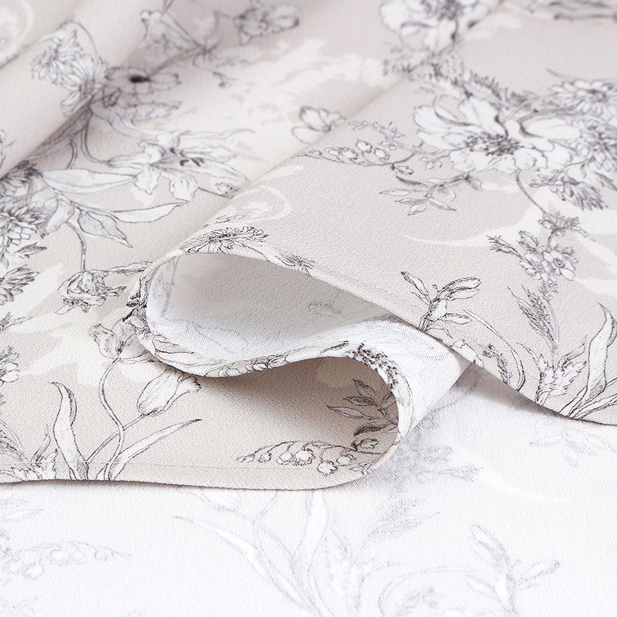 しなやかで良質なドレープ性と上品な風合いが特徴的で、上質感溢れる軽やかなシフォン素材。