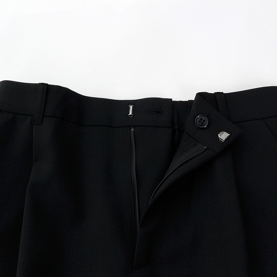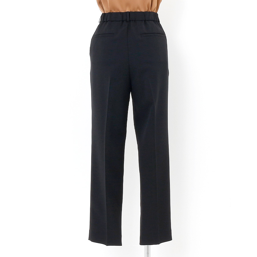 ミニマルなデザインが魅力のテーパードパンツ。