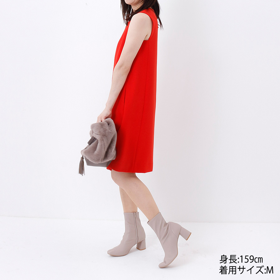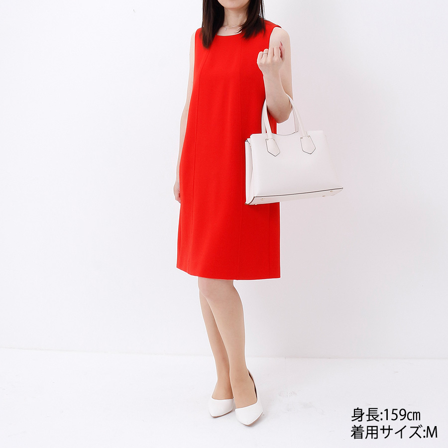 裾に少し丸みを持たせたノースリーブワンピース。