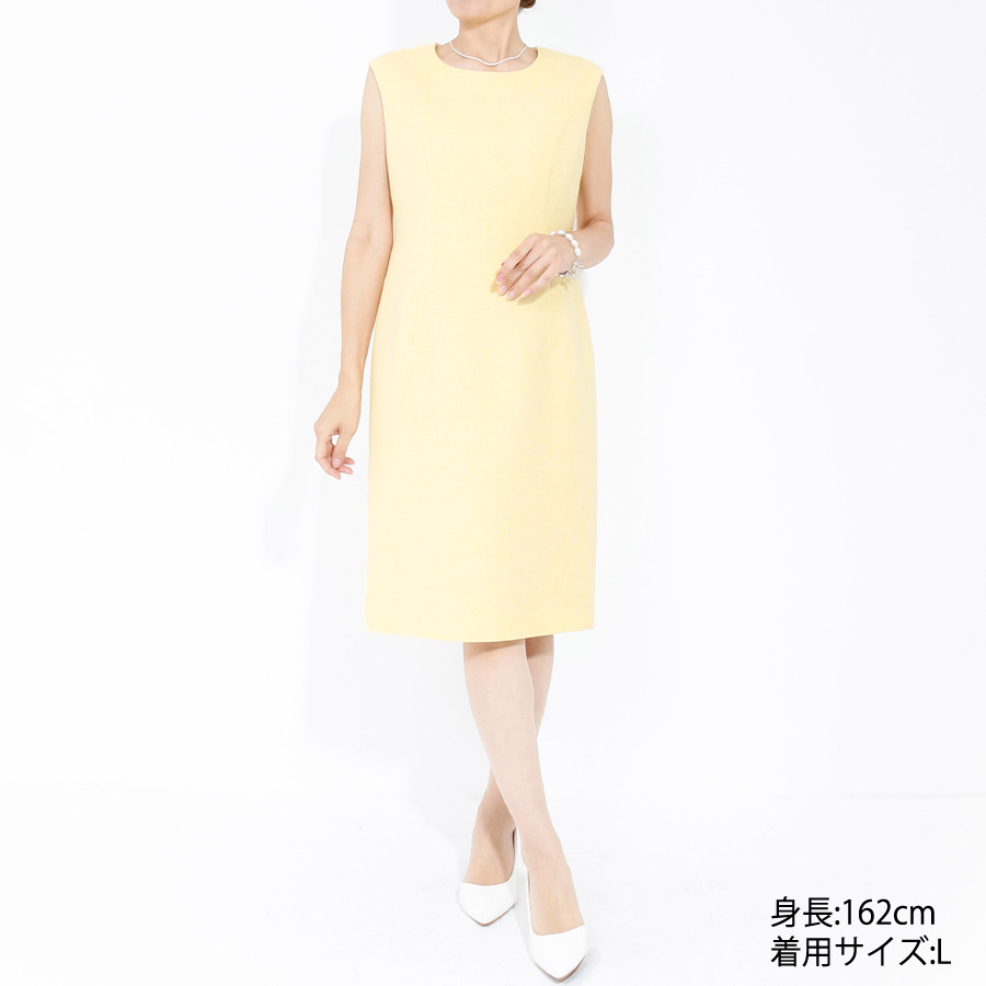 上質なウール素材を使用した、淡いイエローカラーのワンピース。