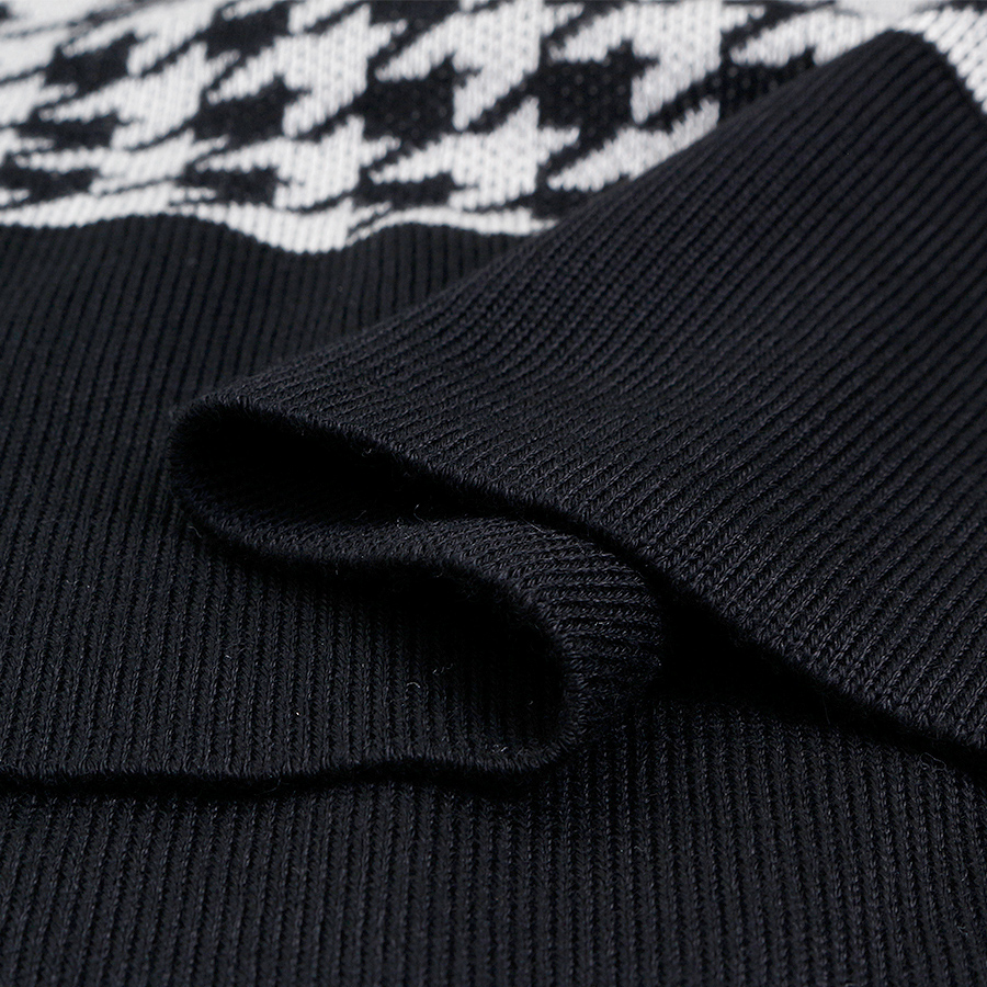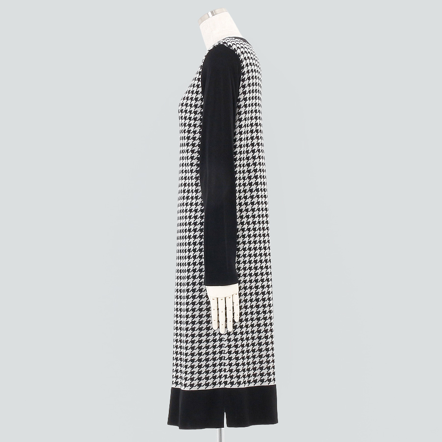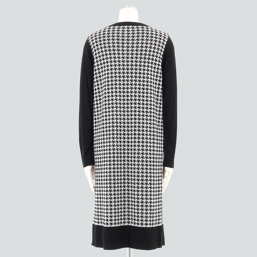 クラシックな千鳥格子柄が目を引くニットワンピース。