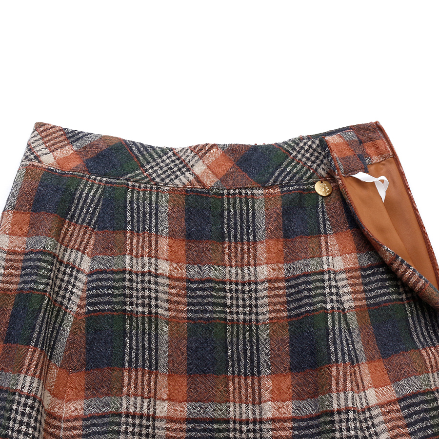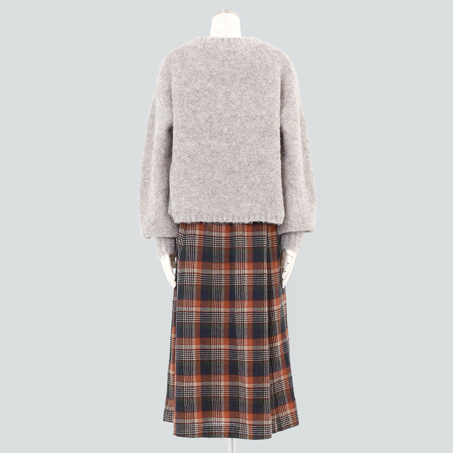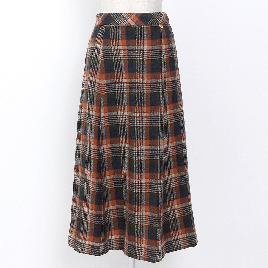 ニット&ウールチェックスカート(Mサイズ / グレー×オレンジ )