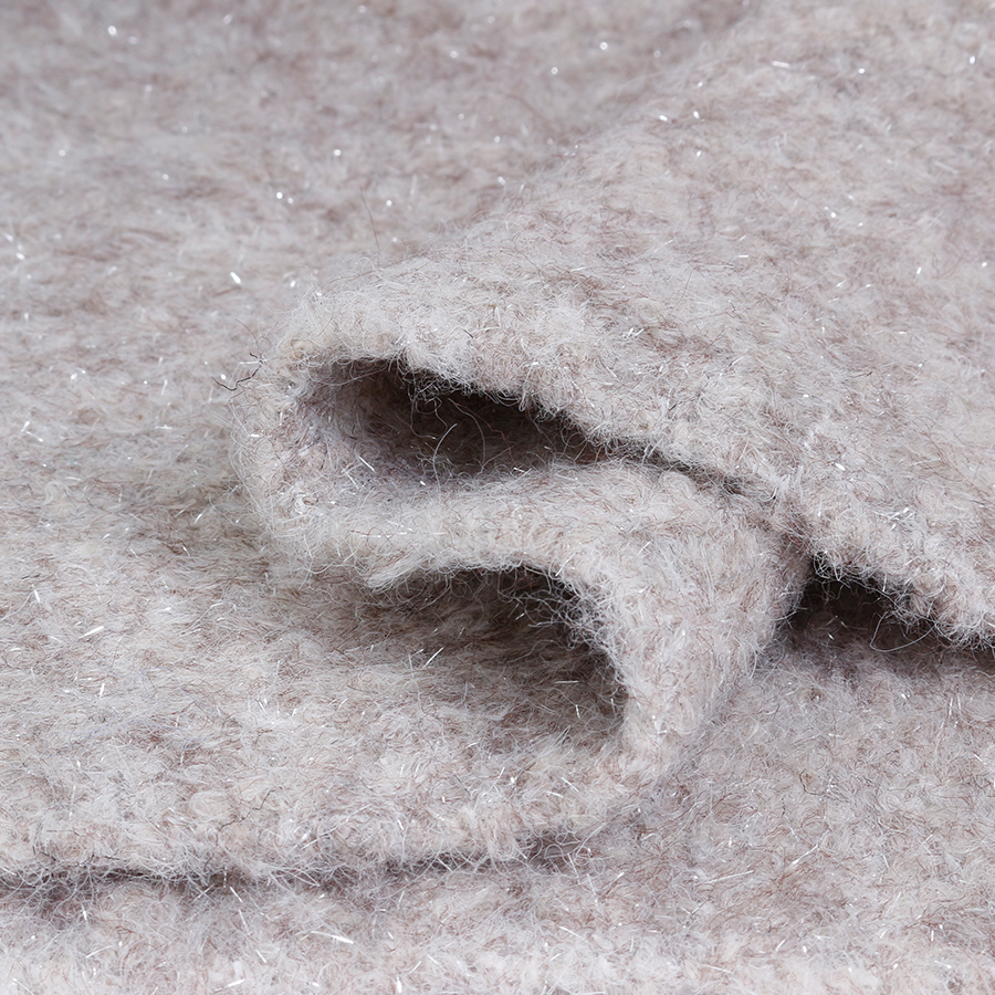 ラメ糸がさりげなく輝くふんわりニットは、華やかさと上品さを兼ね備えた一枚。