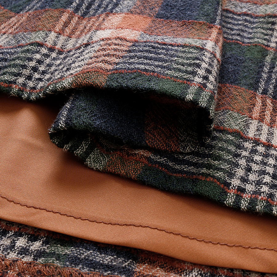 軽い生地なのに暖かいウール混のチェック生地。