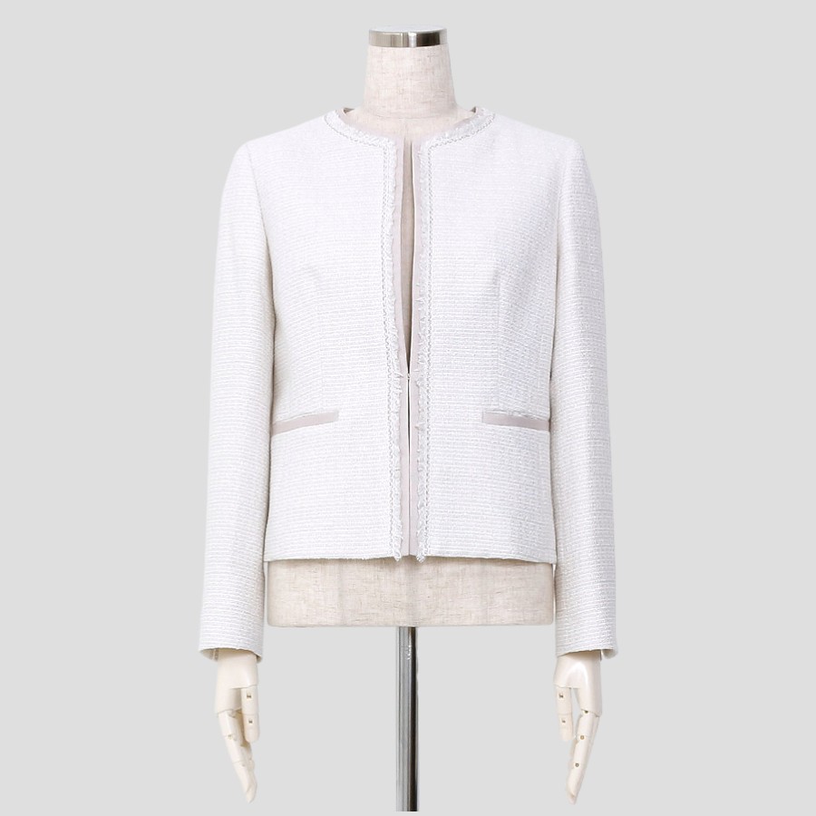 | 素材 | ジャケット:(表地)レーヨン39% 綿38% ポリエステル12% アクリル11%(別布)ポリエステル100%(ブレード)レーヨン89% ナイロン11% ワンピース:ナイロン59% レーヨン35% ポリウレタン6% |