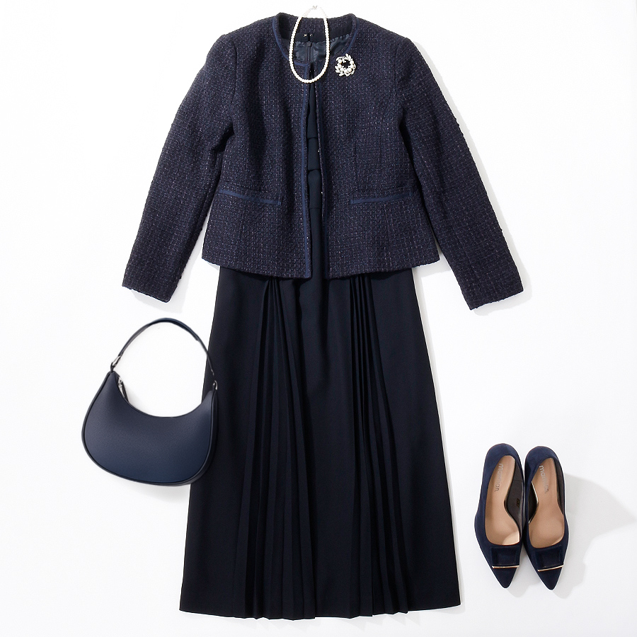 スカート部分に施されたプリーツが華やかで女性らしい雰囲気に。