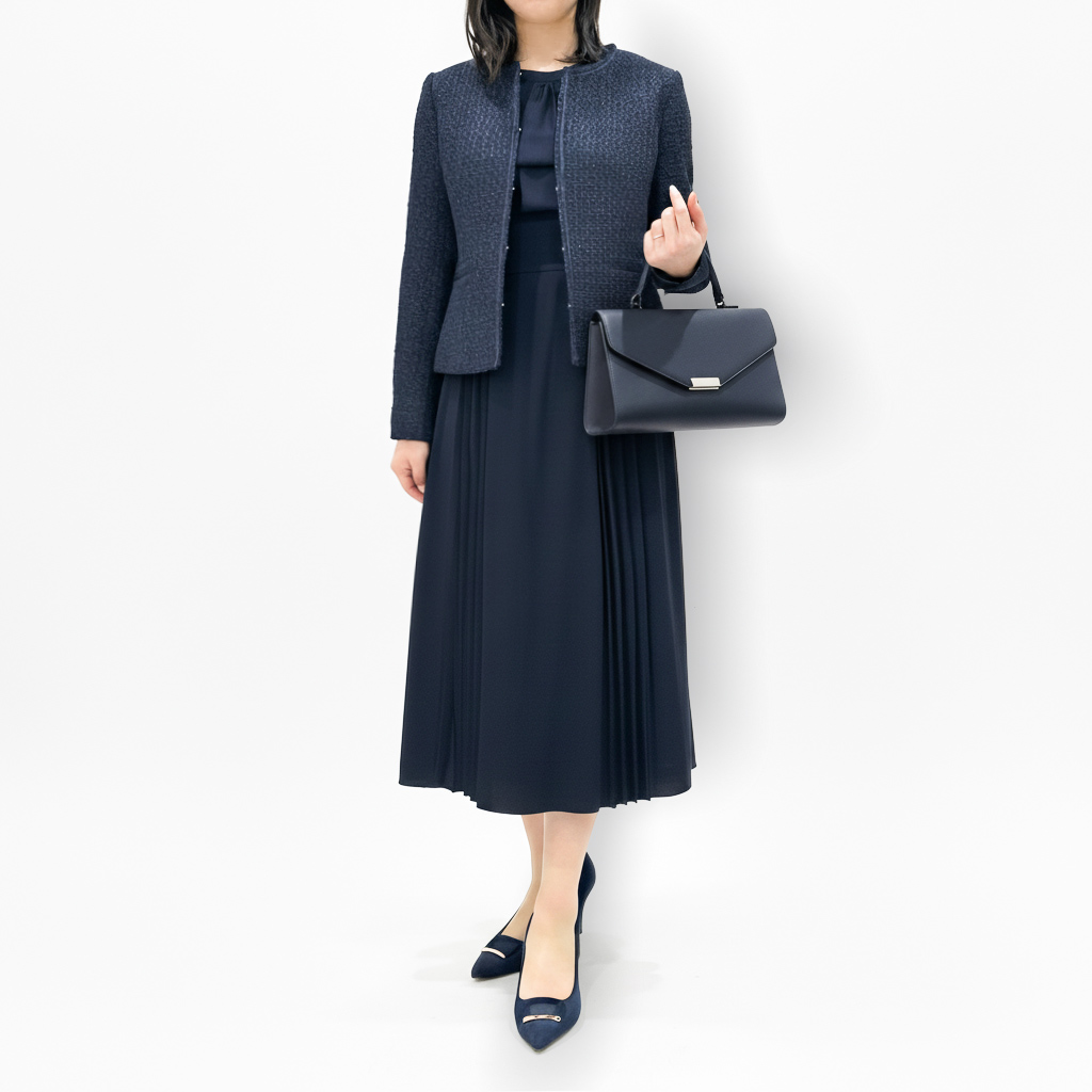 | 素材 | ジャケット:ポリエステル53% アクリル23% 綿16% レーヨン8% ワンピース:ポリエステル100% |