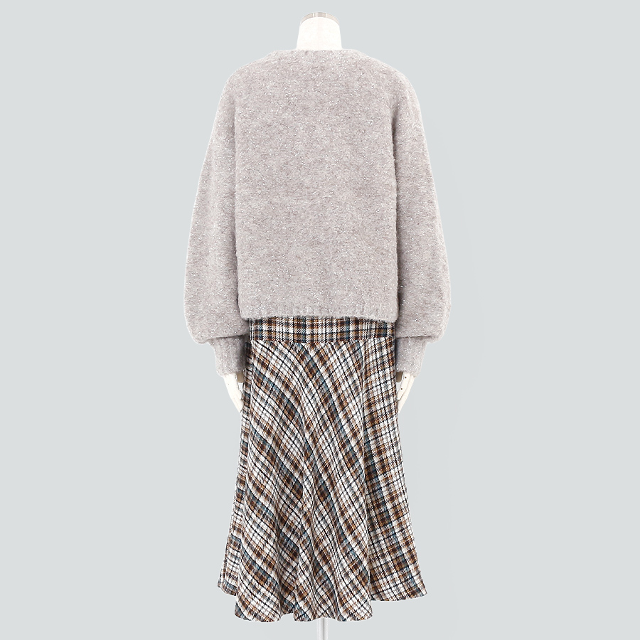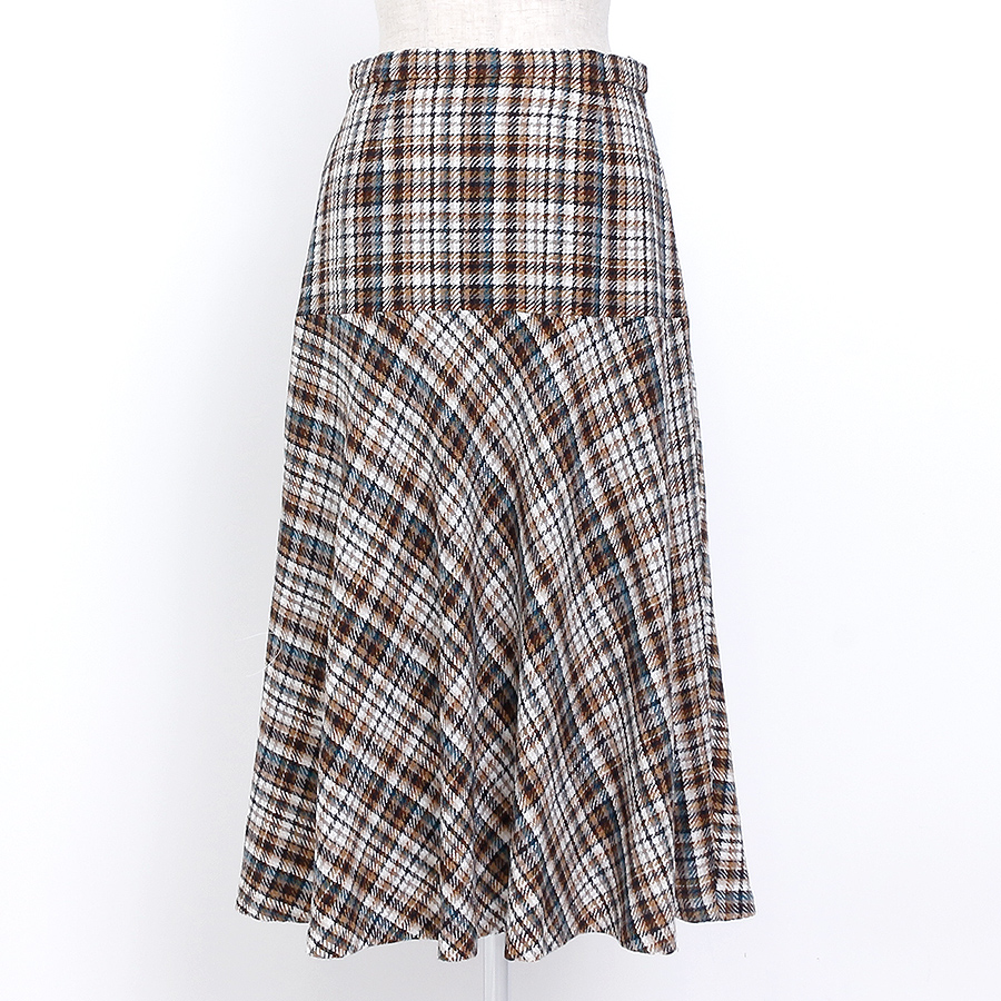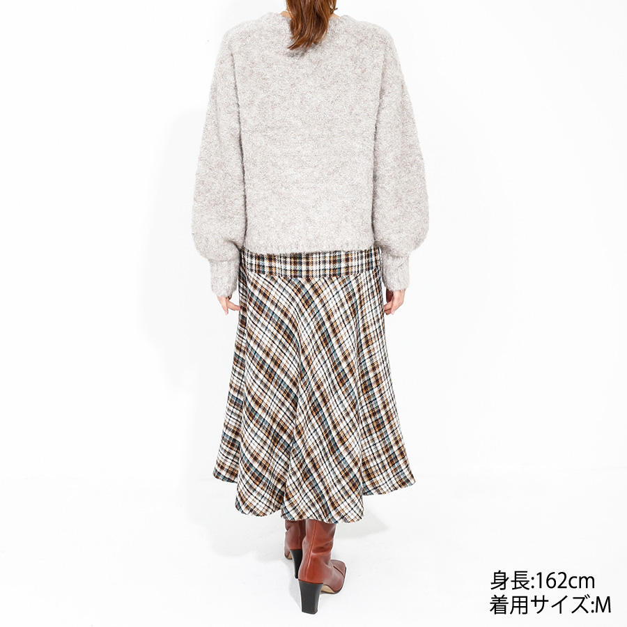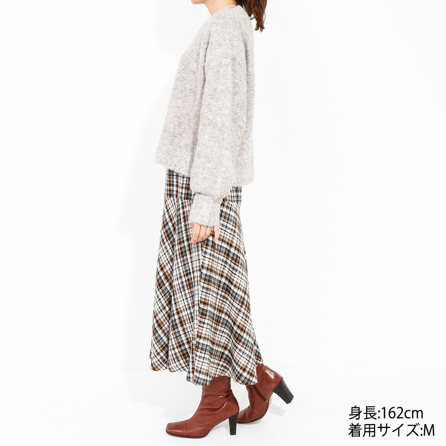 ニット&チェック柄フレアスカート(Mサイズ / グレー×ブラウン )
