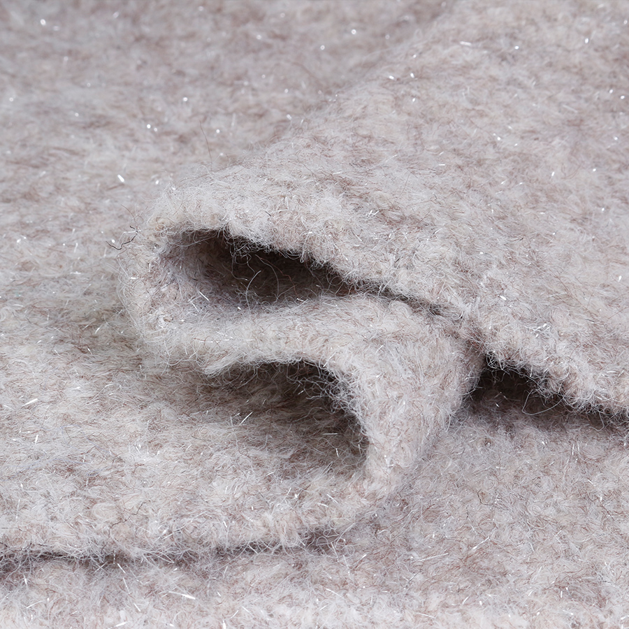 ラメ糸がさりげなく輝くふんわりニットは、華やかさと上品さを兼ね備えた一枚。