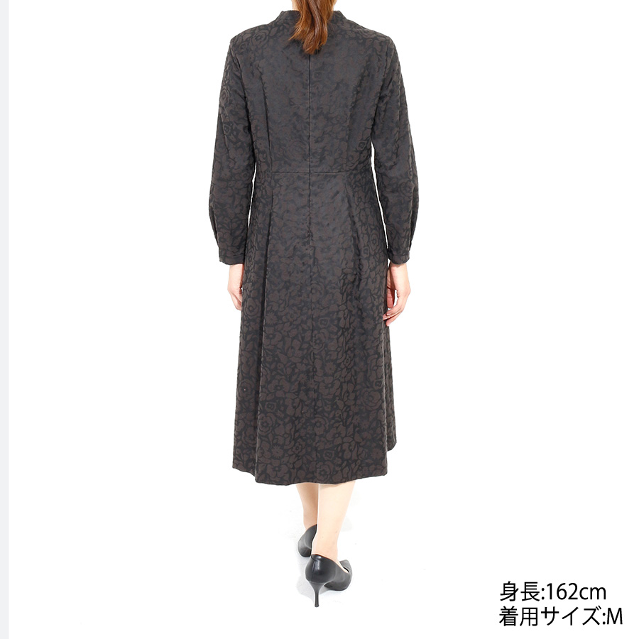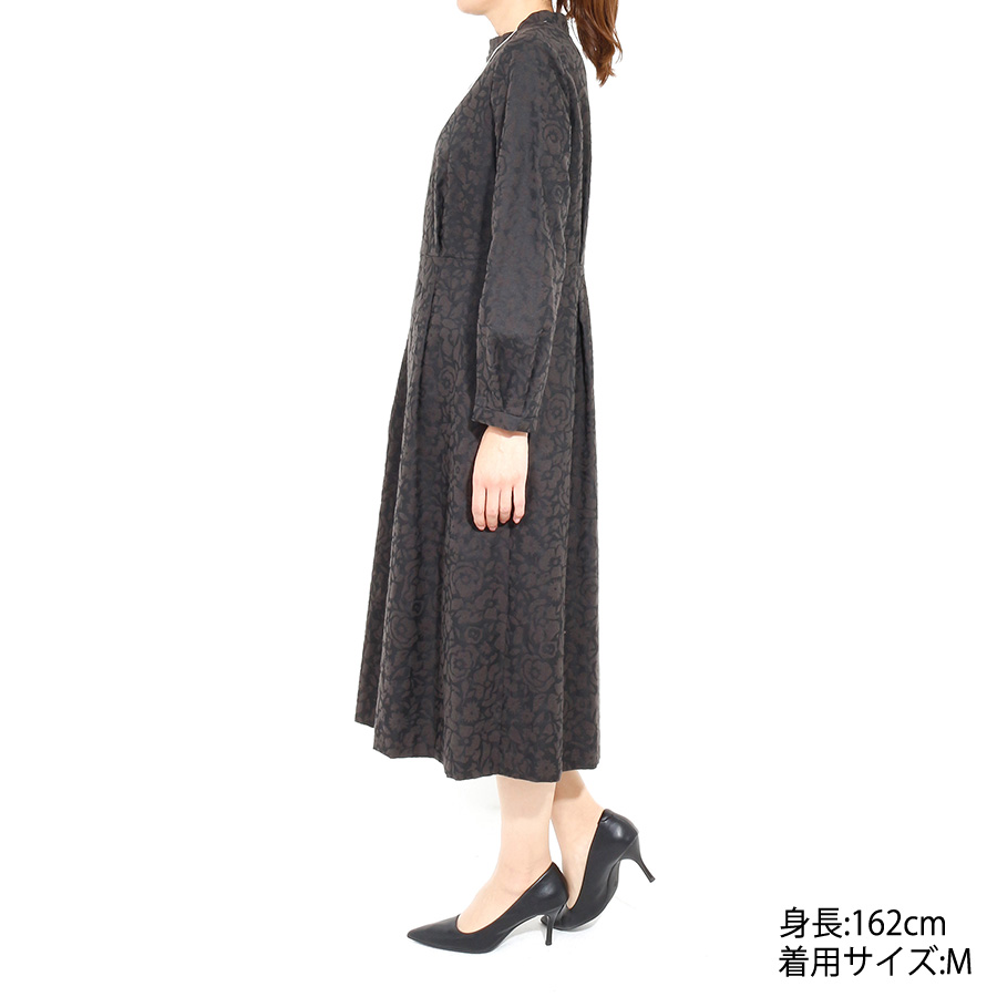 フラワー柄部分がさりげなく起毛した温かみと上品さを併せ持ったワンピース。