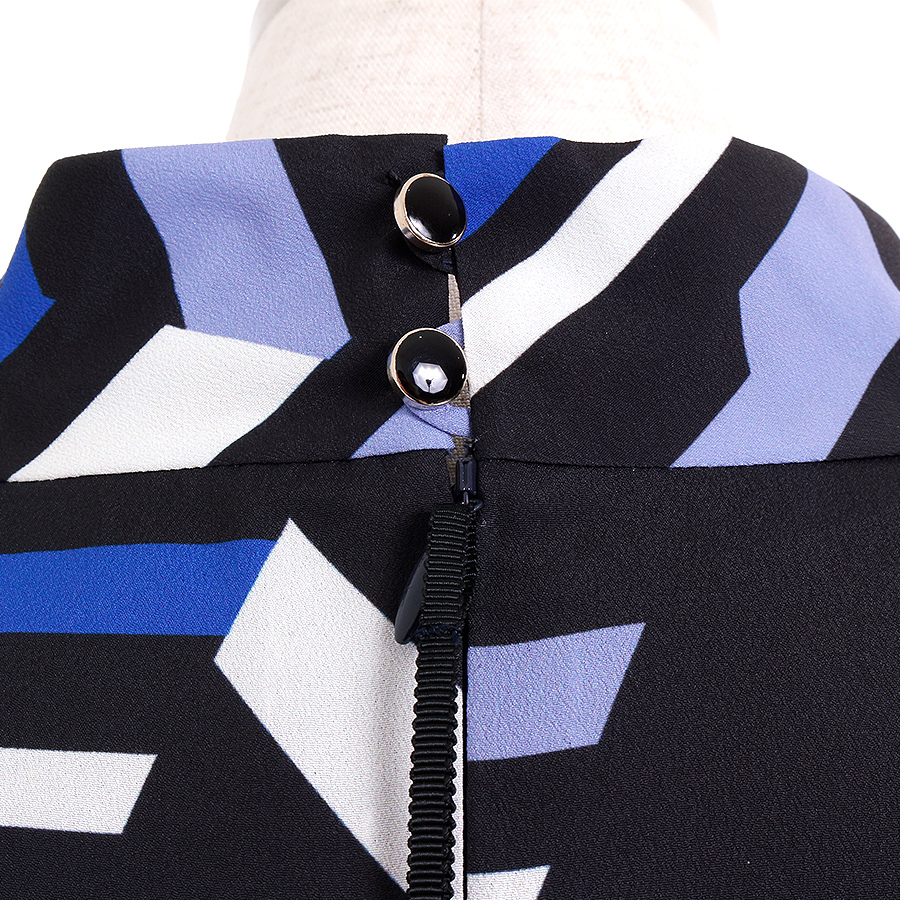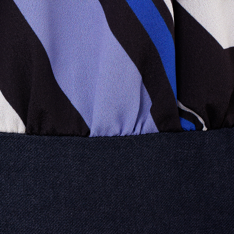 大胆な配色が目を惹くジオメトリック柄のセパレート風ドッキングワンピース。