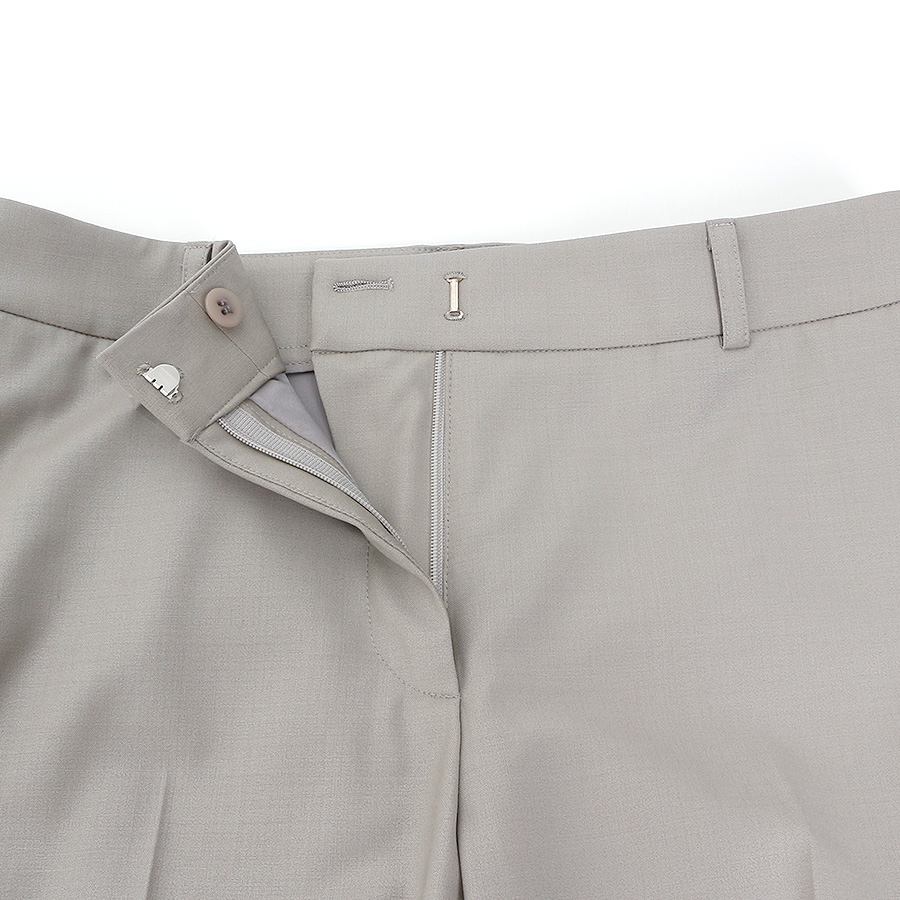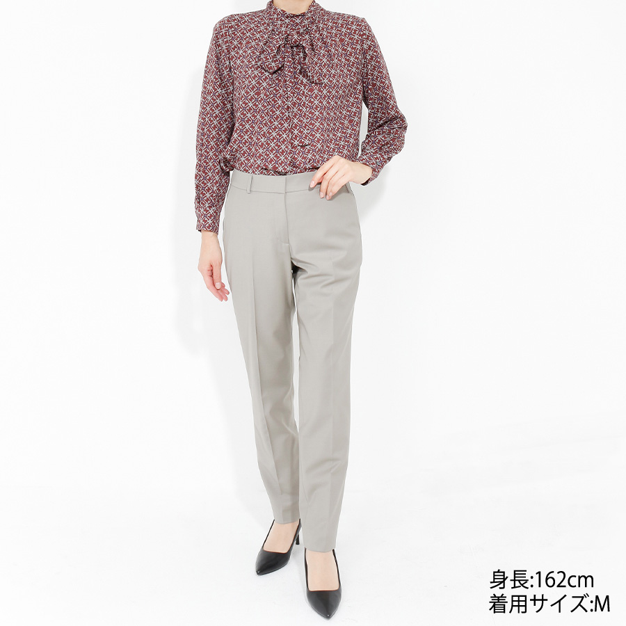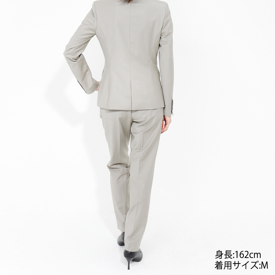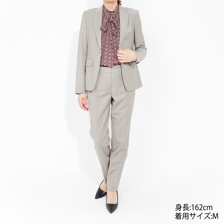 リッチ感のあるハンド風ステッチが施されたテーラーカラージャケットと、美しいシルエットが魅力のパンツスーツ。