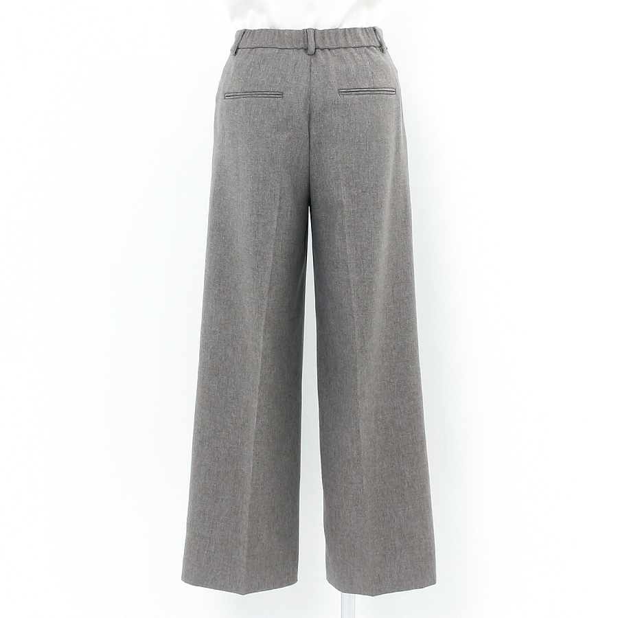 すっきりとしたV開きとワイドパンツが、スタイルアップを叶えます。
