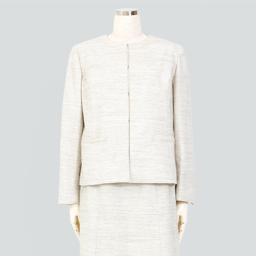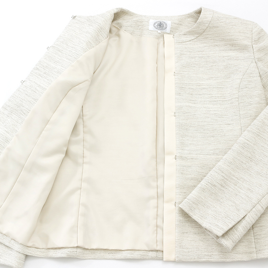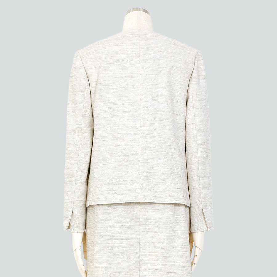 すっきりとしたノーカラージャケット。