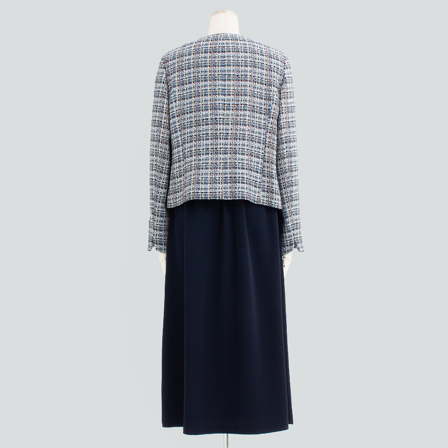 【初回レンタル】スラブツイードジャケット&Wストレッチタックスカート(Lサイズ / ネイビー / Lui Chantant(ルイシャンタン))
