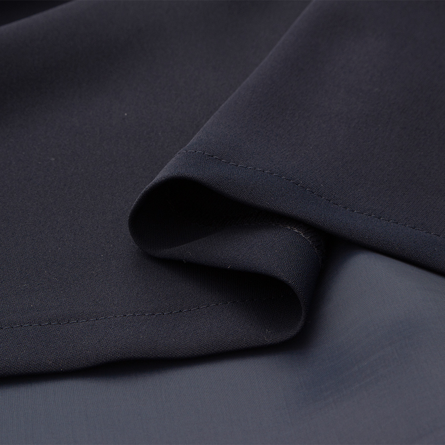 ネイビーのトリミングが全体を引き締め、きちんと感を演出します。