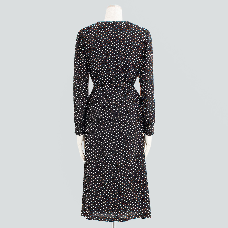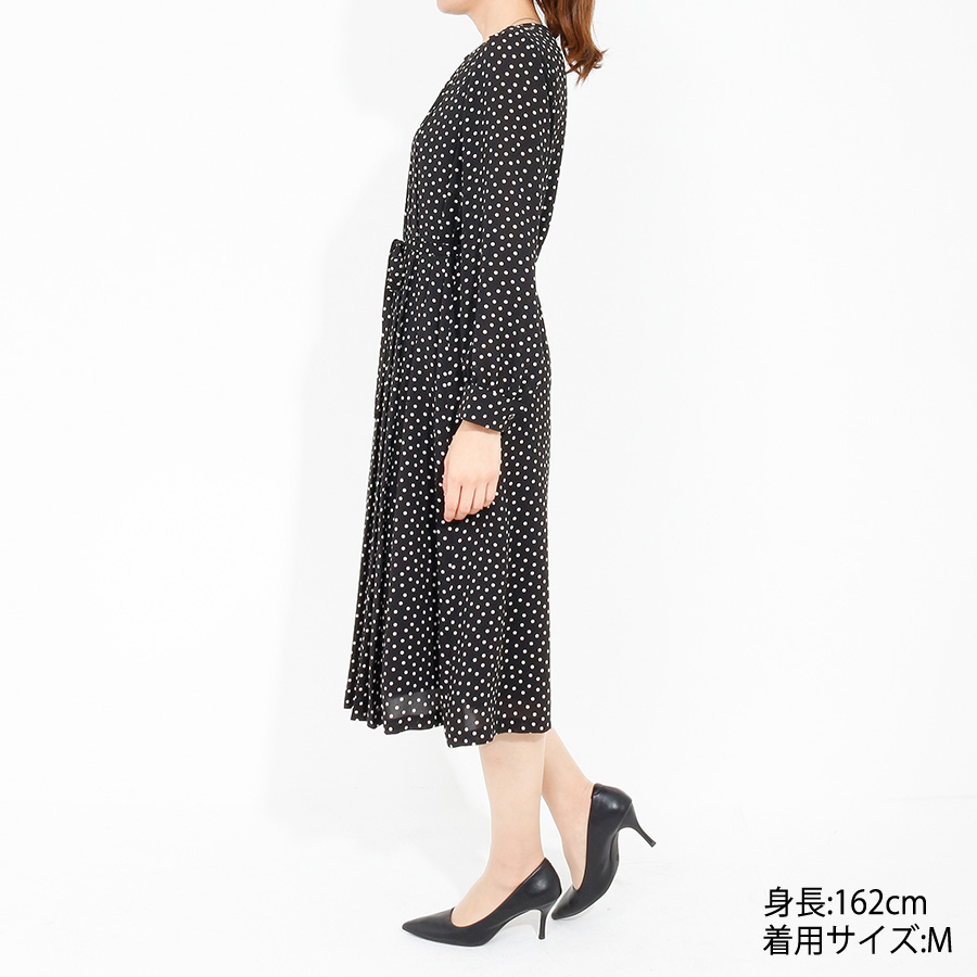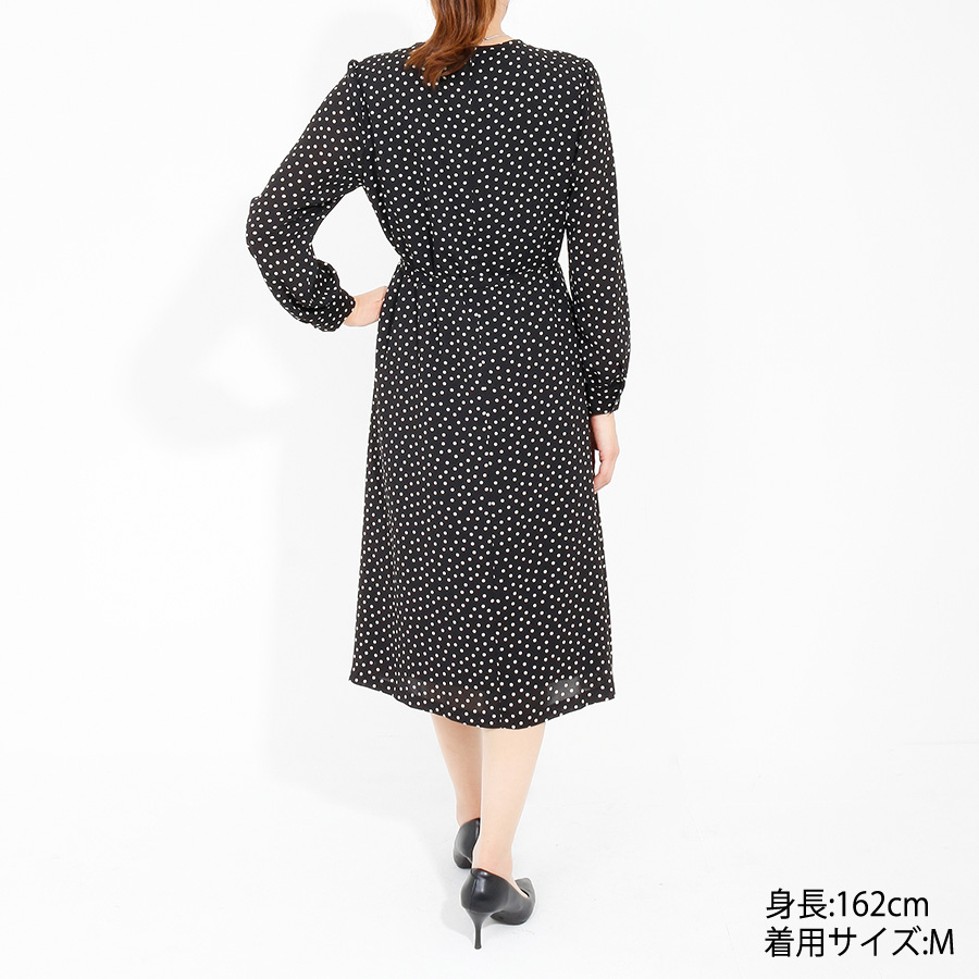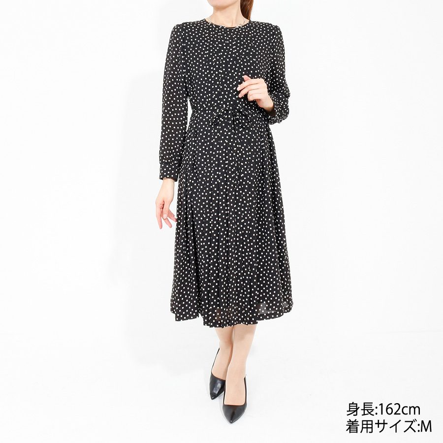 【初回レンタル】ドットプリントワンピース(Lサイズ / ブラック / TRANS WORK(トランスワーク)) [付属品 点:ウエストリボン]
