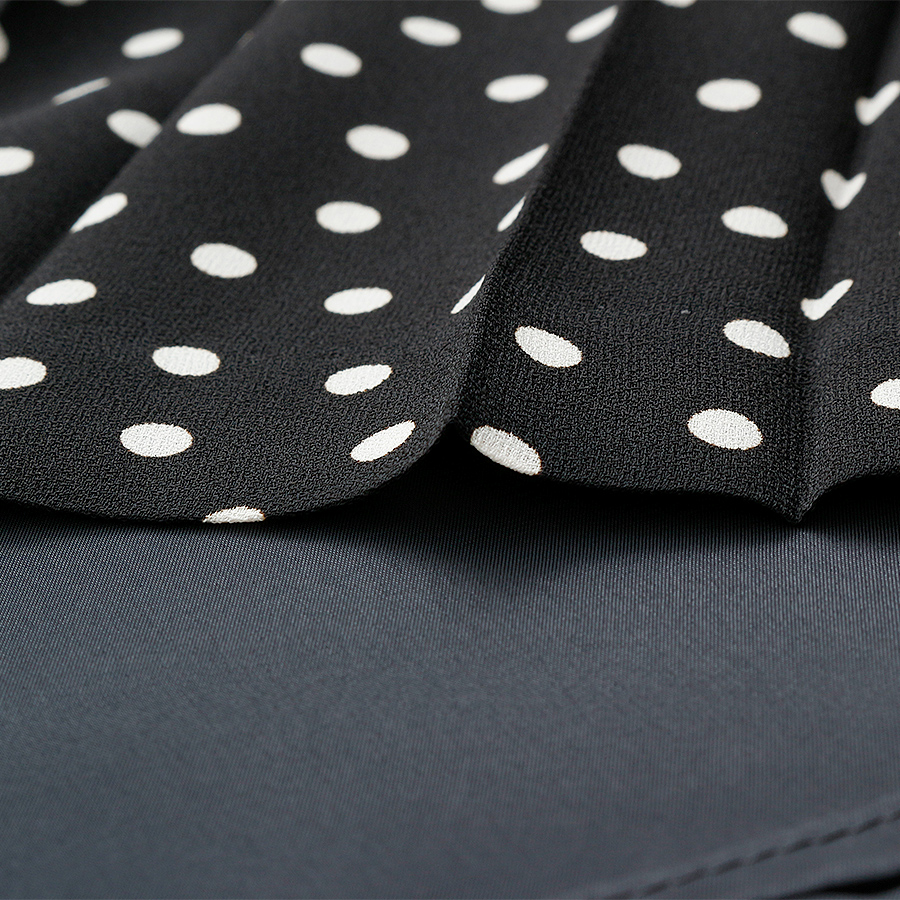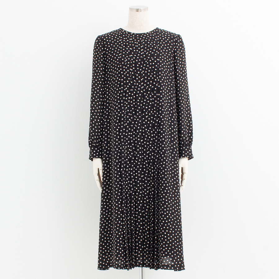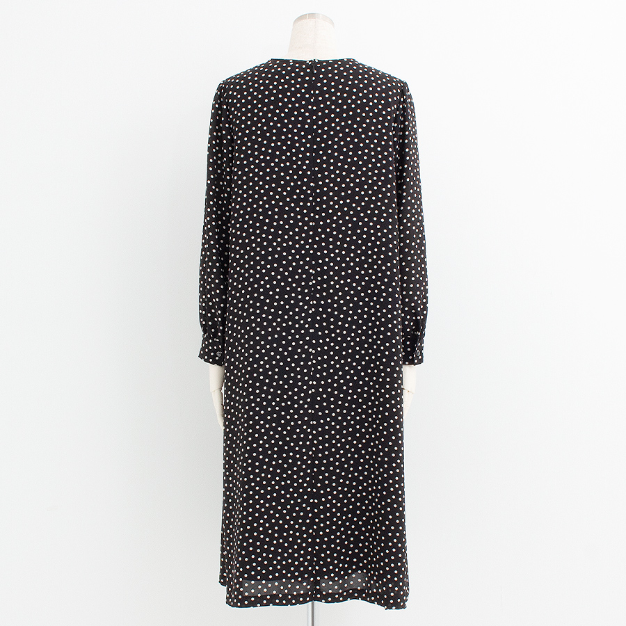 クラシカルなドット柄が目を引く、上品なワンピース。