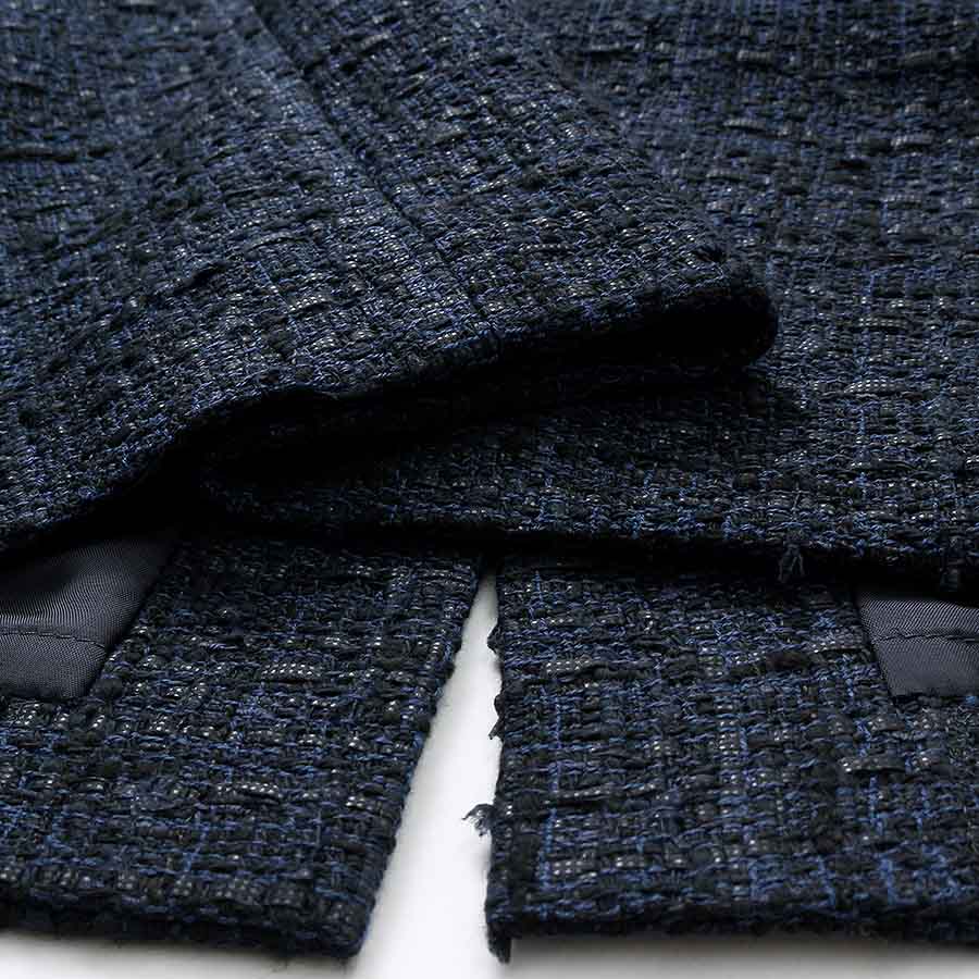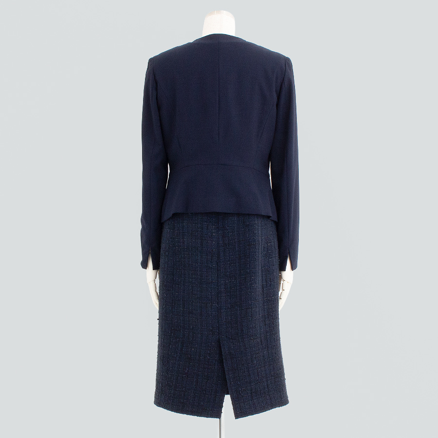 素材 【ジャケット】ポリエステル47%レーヨン46%ポリウレタン4%ナイロン3%【ワンピース】(表地)綿56% ナイロン15% ポリエステル13% レーヨン13% アクリル3%(別布)ポリエステル100%