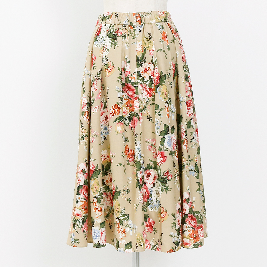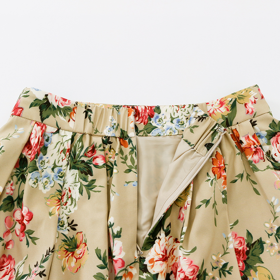 ほど良いボリュームのあるフレア感は女性らしく、華やかな印象に。後ろはゴム仕様となっております。