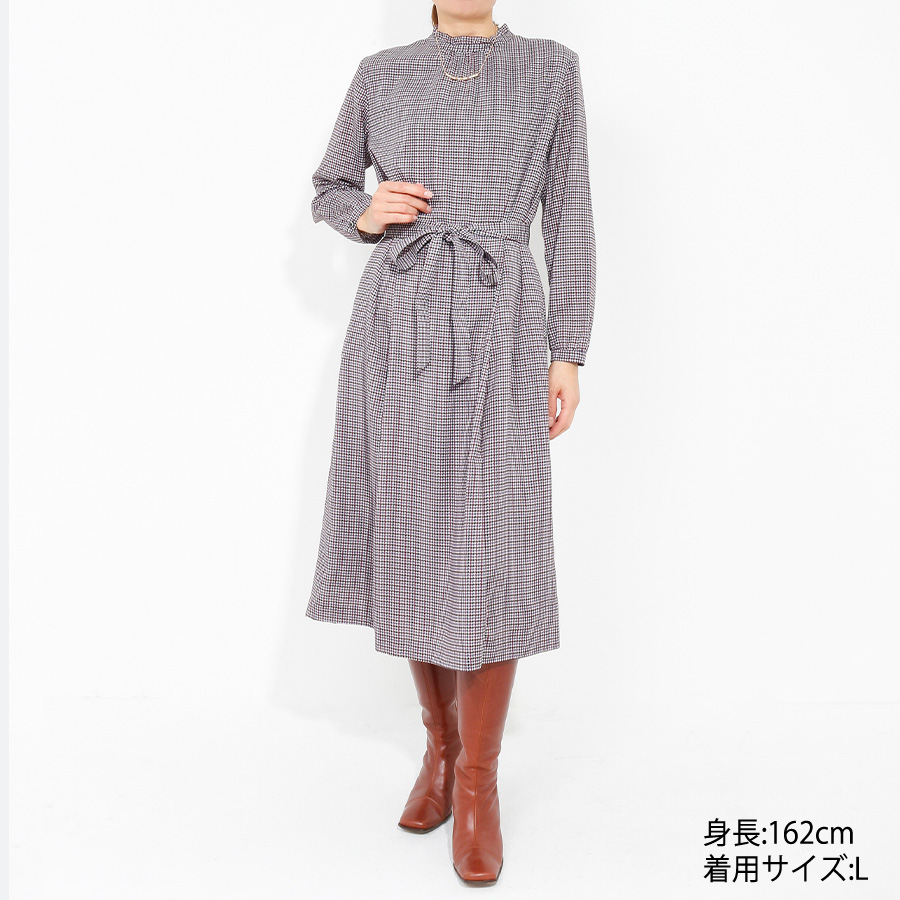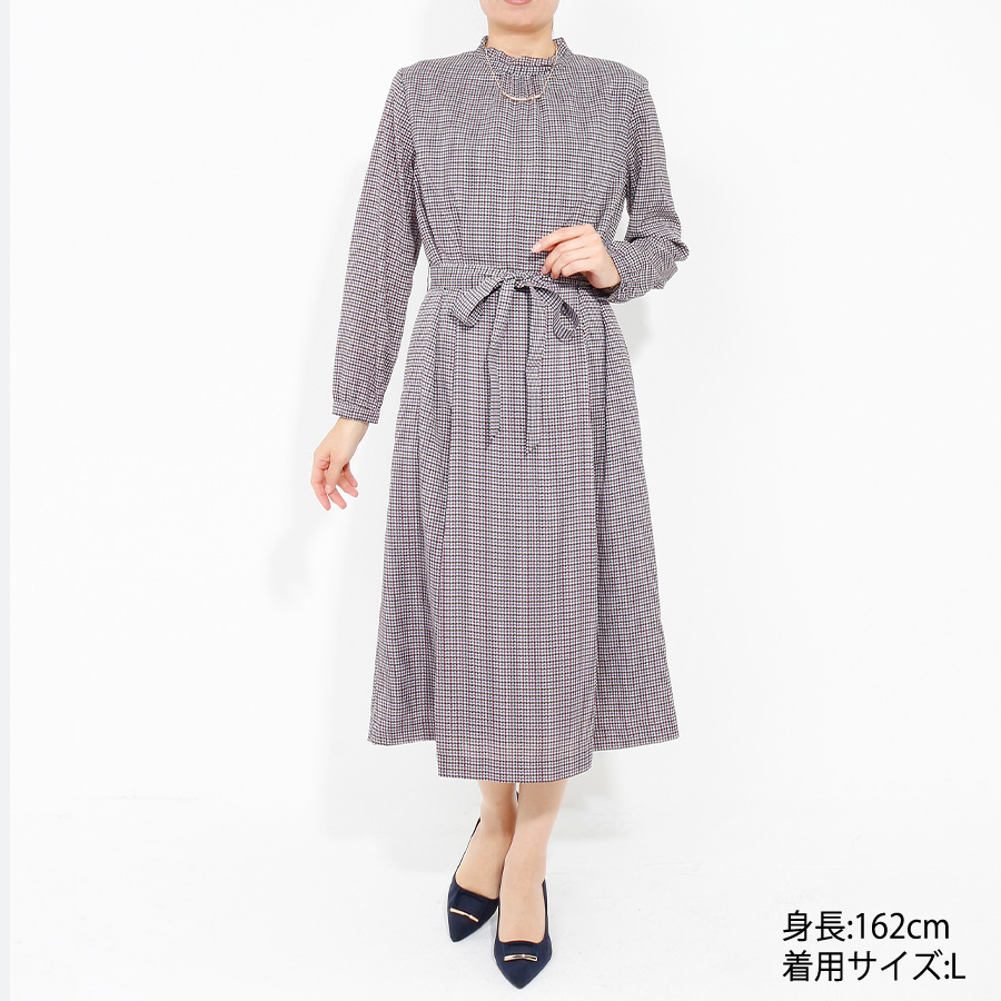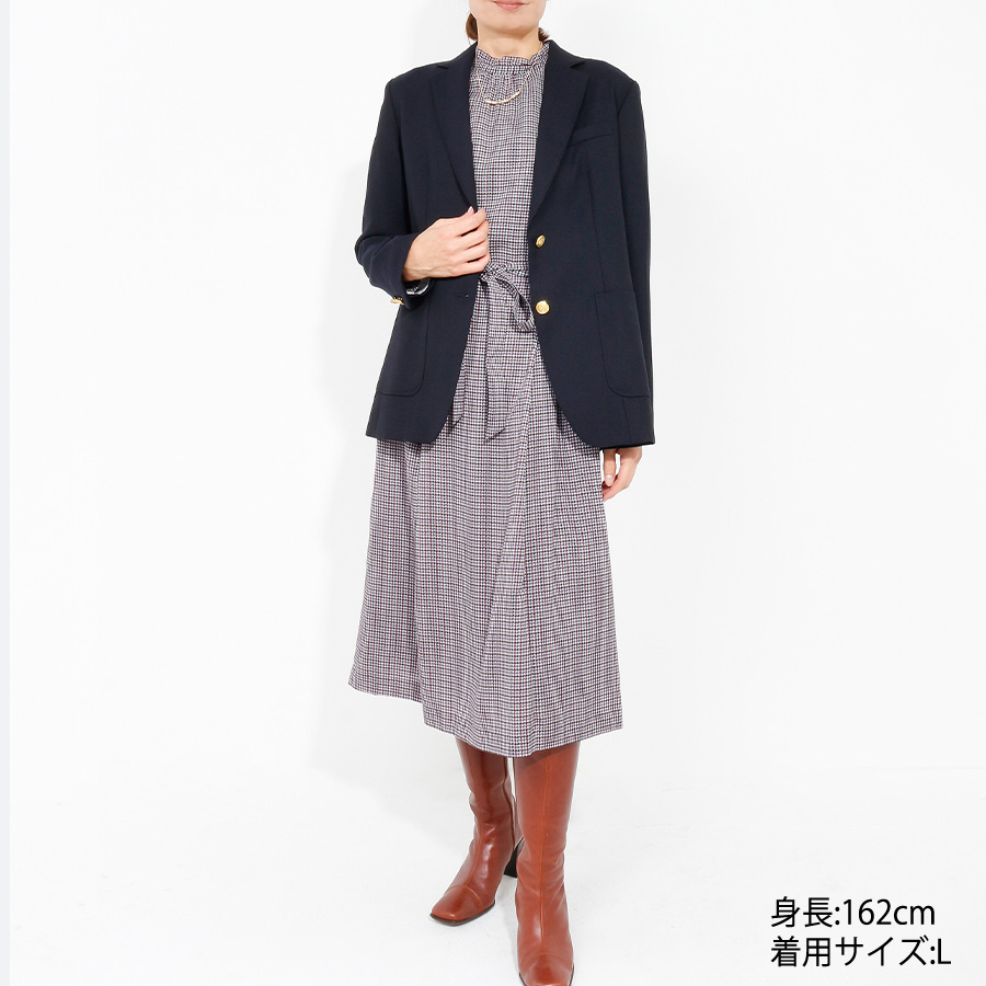 【初回レンタル】千鳥格子柄ワンピース(Lサイズ / ネイビー系 / J.PRESS(ジェイプレス)) [付属品 点:ウエストリボン]
