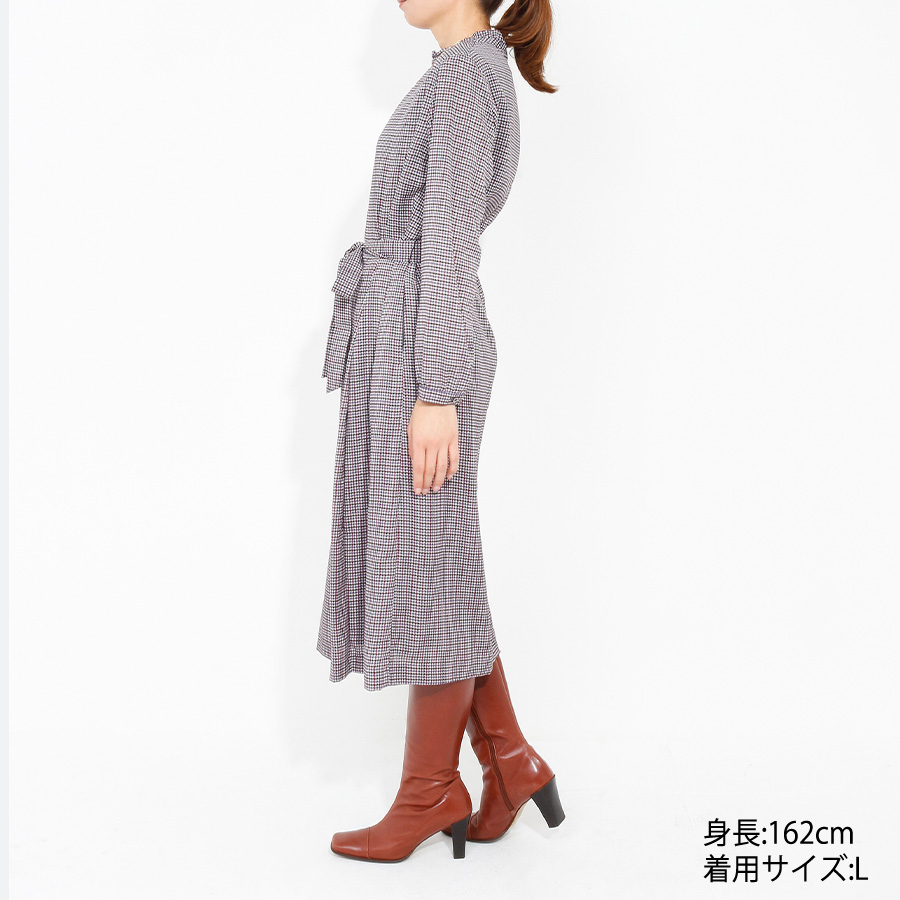 細かな千鳥柄が上品なロングワンピース。