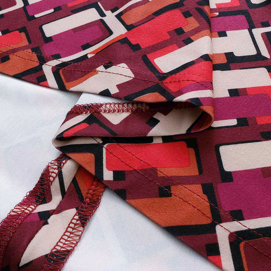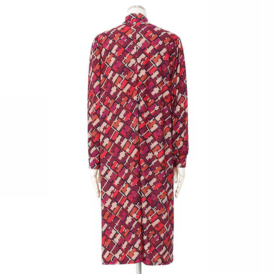 レトロなプリントが人目を惹くハイネックワンピース。
