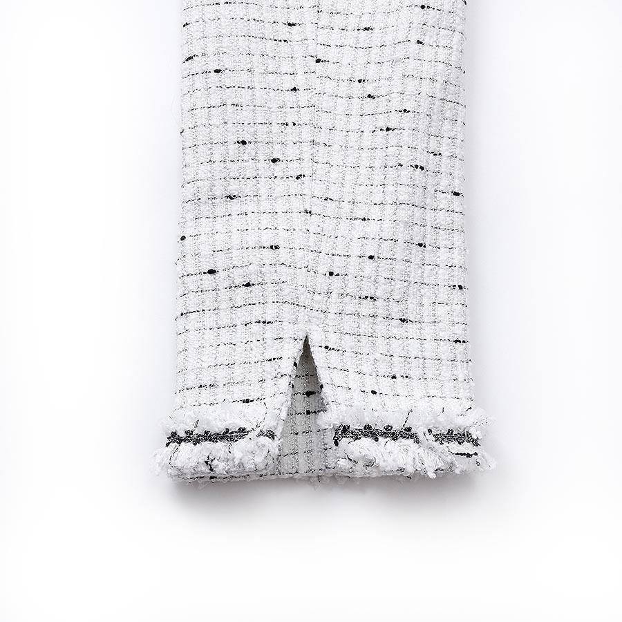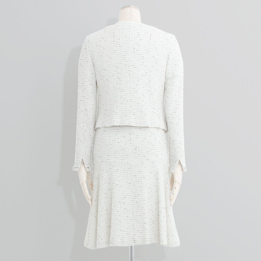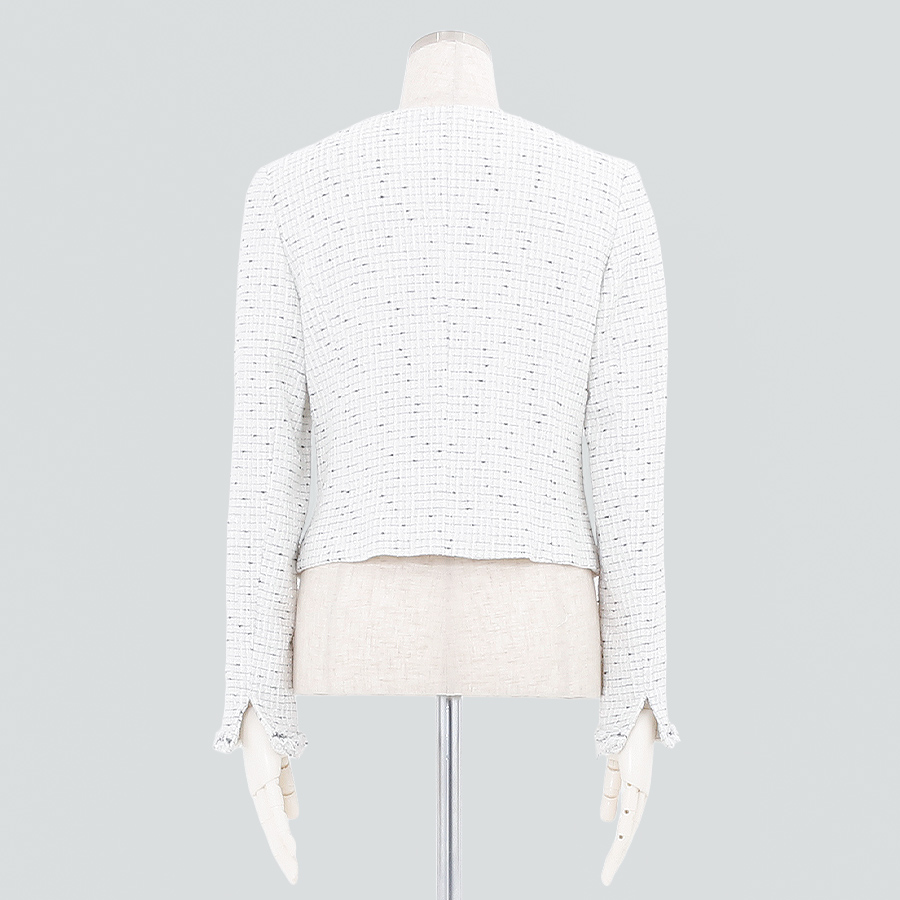 ラメ糸が織り込まれた上品なツイード生地のジャケット。