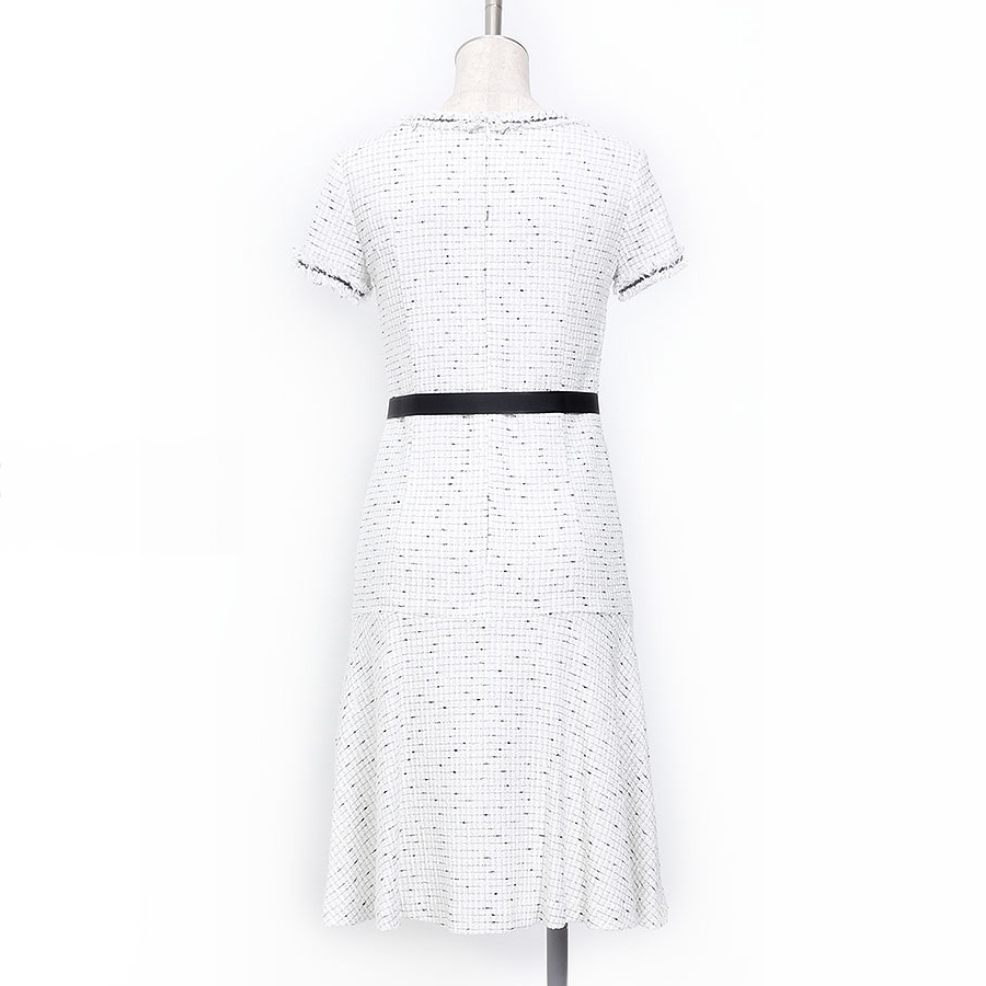 付属リボンによるウエストマークは全体を引き締めて、美シルエットに魅せてくれます。