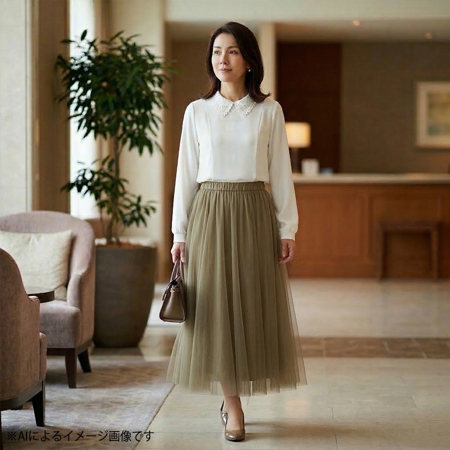 ふんわりと女性らしいシルエットを演出するギャザースカート。