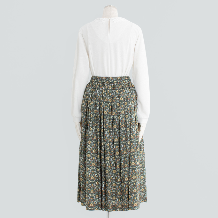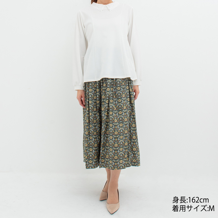 レース襟ブラウス&ギャザースカートセット(Mサイズ / ホワイト×グリーン )