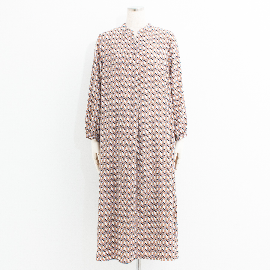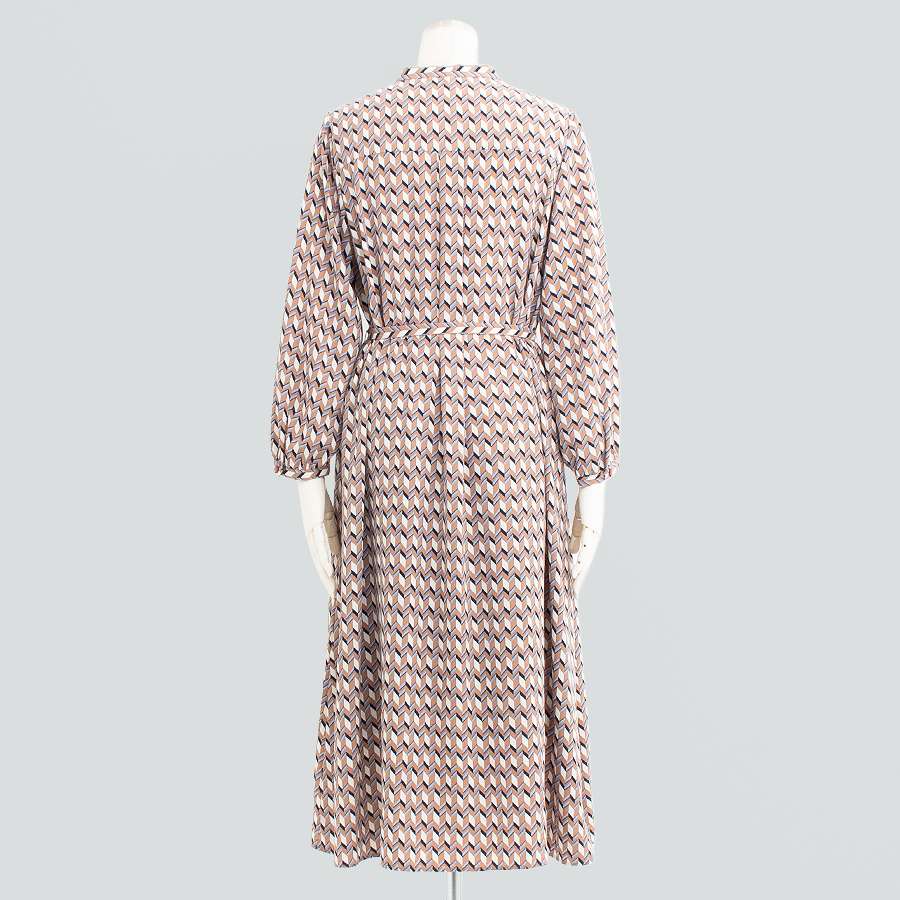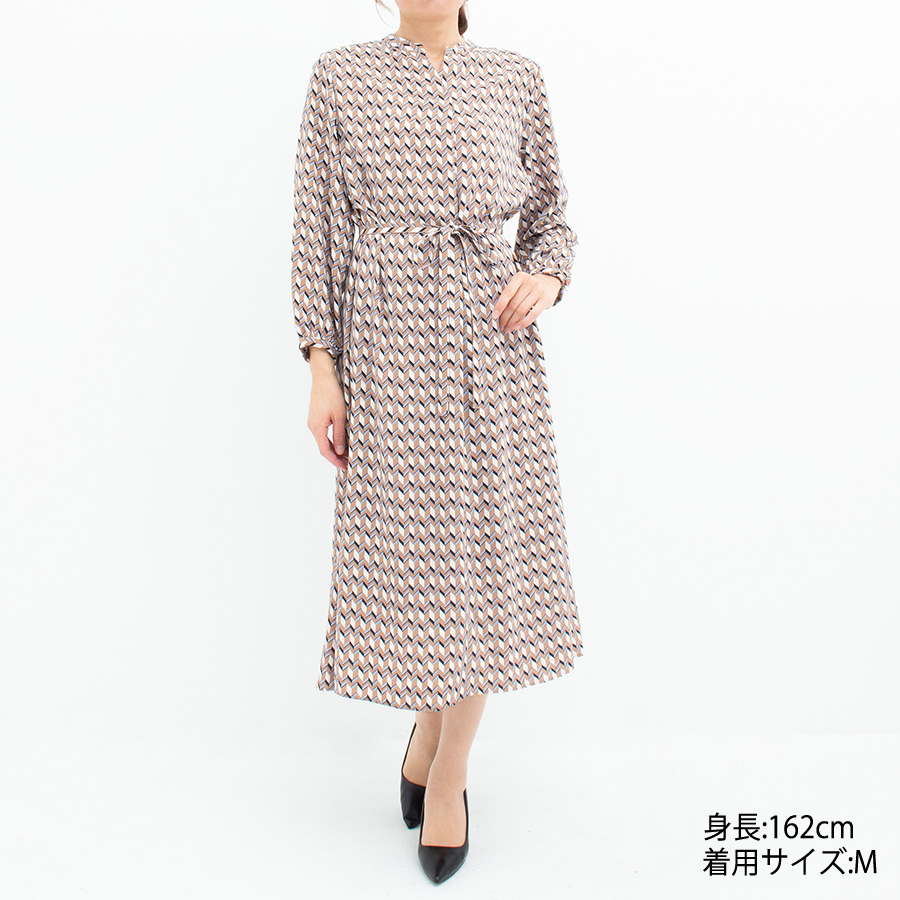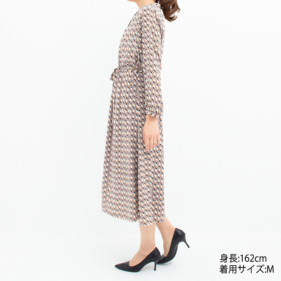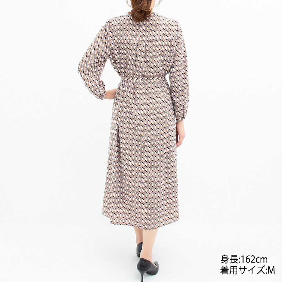 【初回レンタル】ジオメプリントフレアワンピース(Mサイズ / ブラウン / INDIVI(インディヴィ)) [付属品 点:リボンベルト、ペチコート]