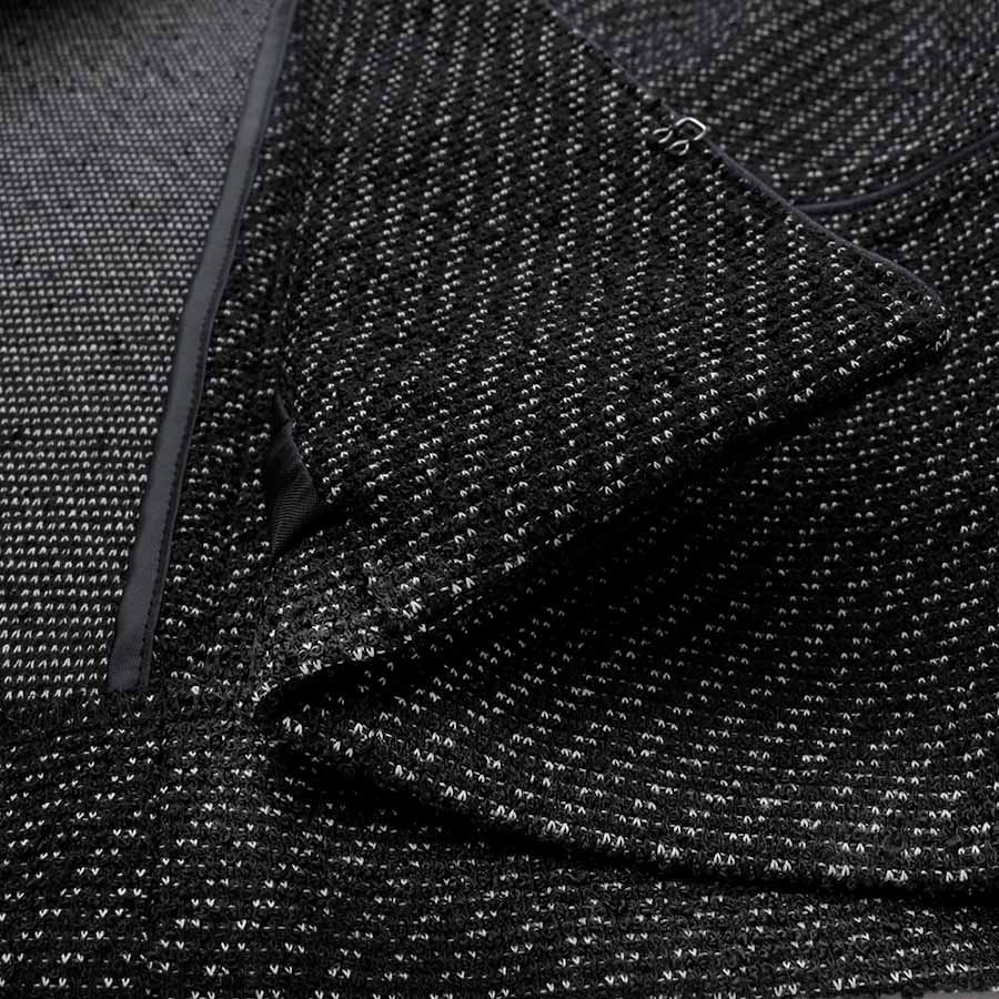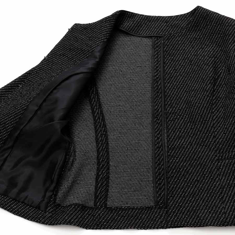 スッキリとしたコンパクトシルエットのノーカラージャケット。