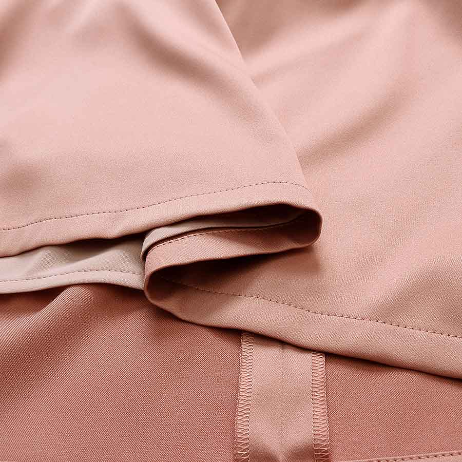 フロントとサイドポケットにサテンパイピングをあしらい華やかさをプラス。